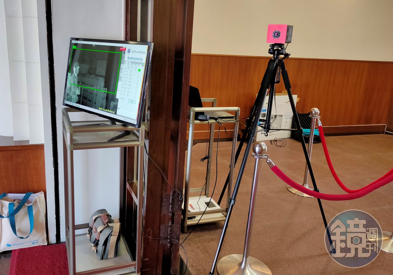 立法院大門口設置的熱顯像儀。發布時間:2020.02.24 12:16 臺北時間