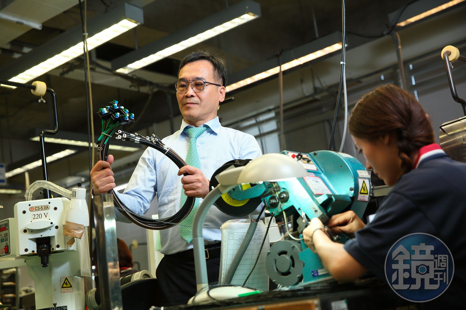 映興主要製作連接線束模組,占營收6成,客製化訂單通常是少量多樣,近2,000家客戶橫跨資訊光電、工業應用、車裝電子,如TOYOTA的車用電源線即可看得到映興的產品。