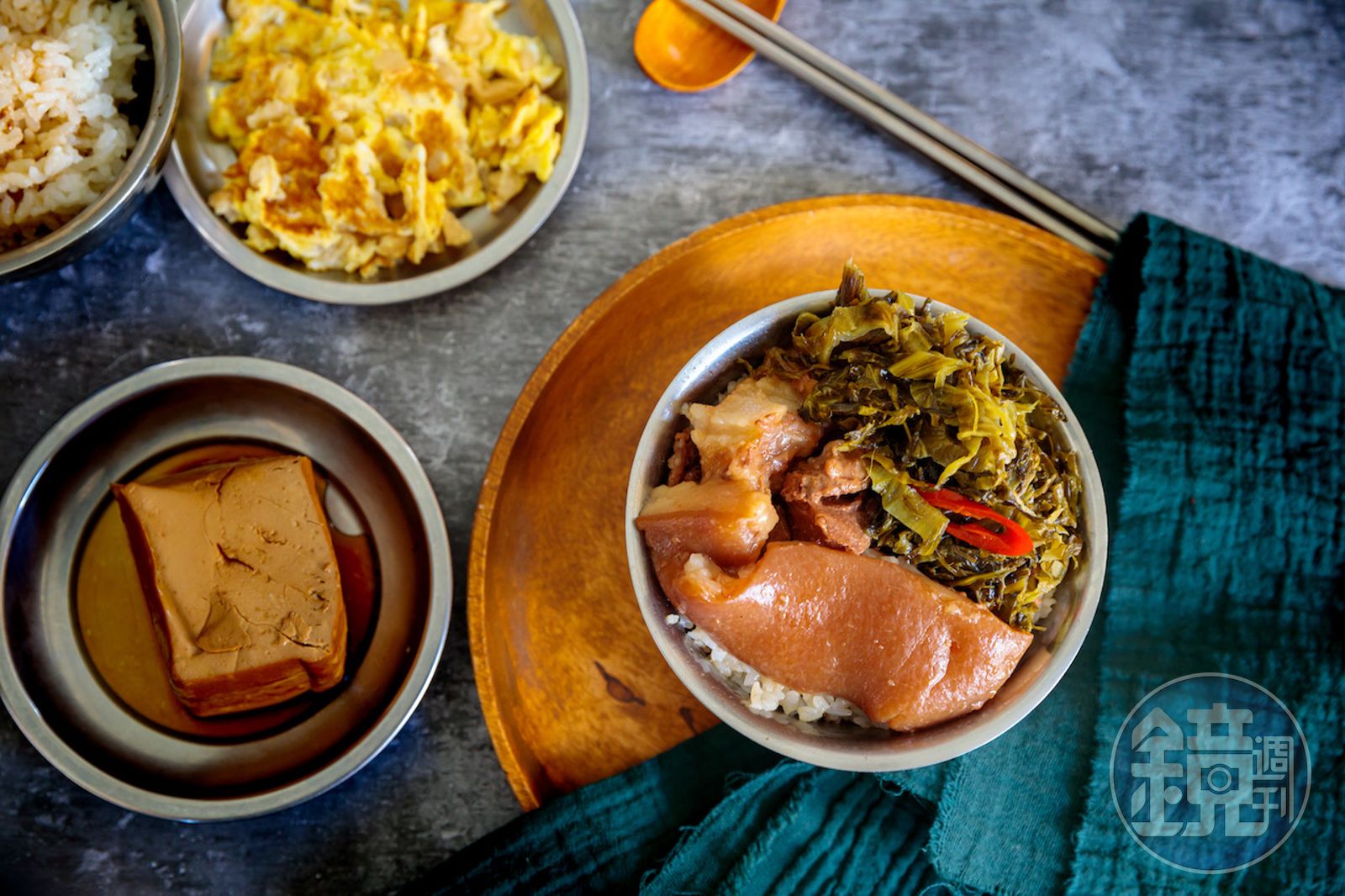 店家用「大川醬油」滷得入味帶膠質的爌肉,色澤晶亮,滋味不死鹹,但一定少不了要搭配酸菜,Morris形容:「爌肉飯精髓就在大口吃酸菜,少了這味絕對不行。」