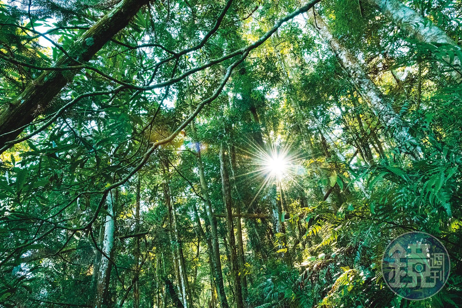 海拔約800公尺的步道,愈往裡頭走,兩旁樹木茂密,只能透進些許陽光,早晨的空氣裡帶有些許涼意,樹林間的小徑不免有點濕滑,兩旁生長快速的植物彷彿快把路面給淹沒,還好步道平緩,還算是好走。