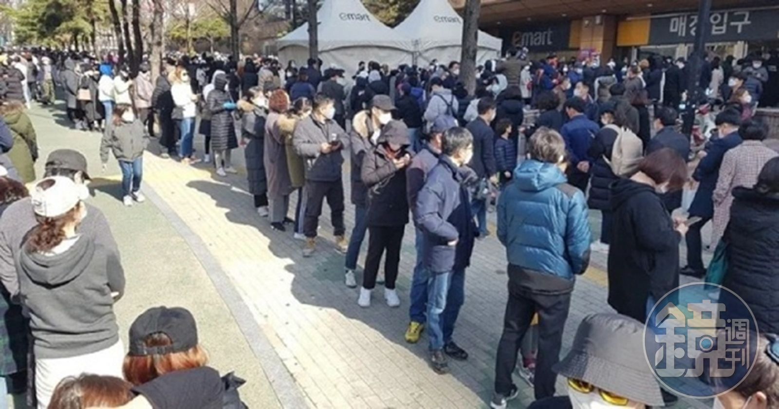 南韓大邱疫情大爆發,促使口罩一片難求,大票民眾為了買到口罩排隊3個小時,3,500片口罩約30分鐘就賣完。就有記者到現場採訪,無意間聽到一旁男子喃喃自語,抱怨「自己確診了卻沒買到口罩」,讓記者立即上前確認。
