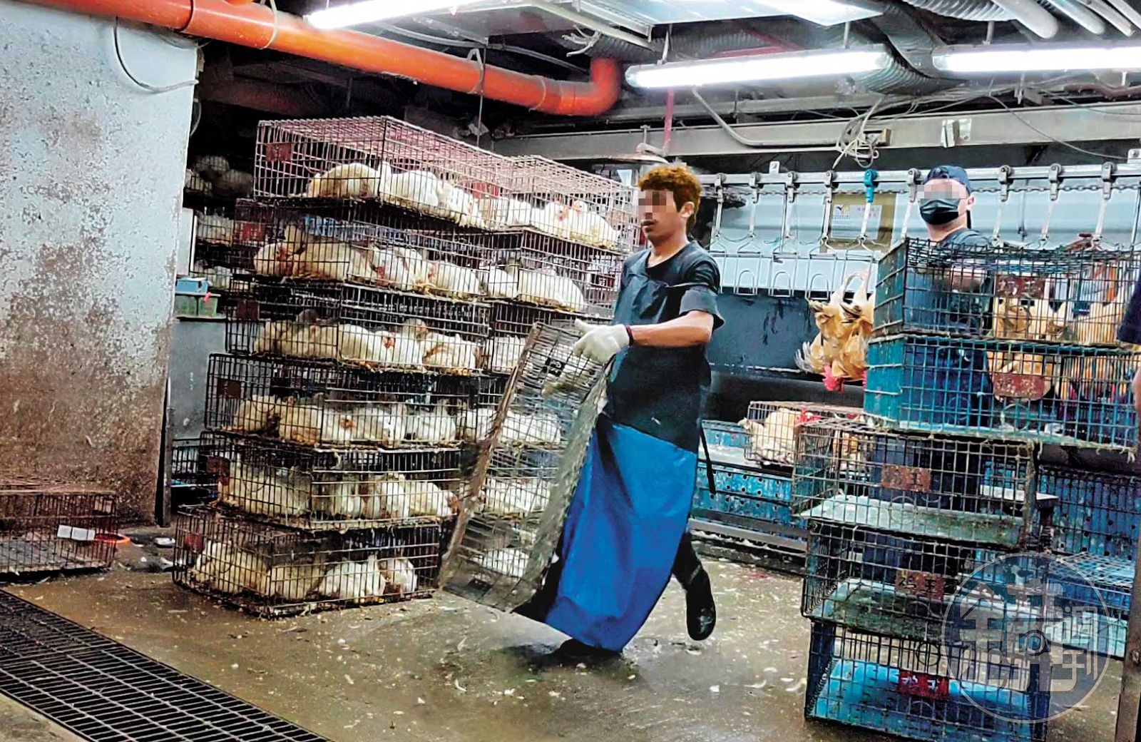 當周邊居民準備就寢,這個屠宰場卻正是人聲鼎沸的時段。本刊直擊,晚間9點多,這群身形與屠宰場台籍工作人員幾無差異的移工,陸續進出,他們會先把各個「行口」(承銷商)運來的雞、鴨活體,一一搬進一樓的屠宰場內,接著約在半夜12點左右開始屠宰作業。