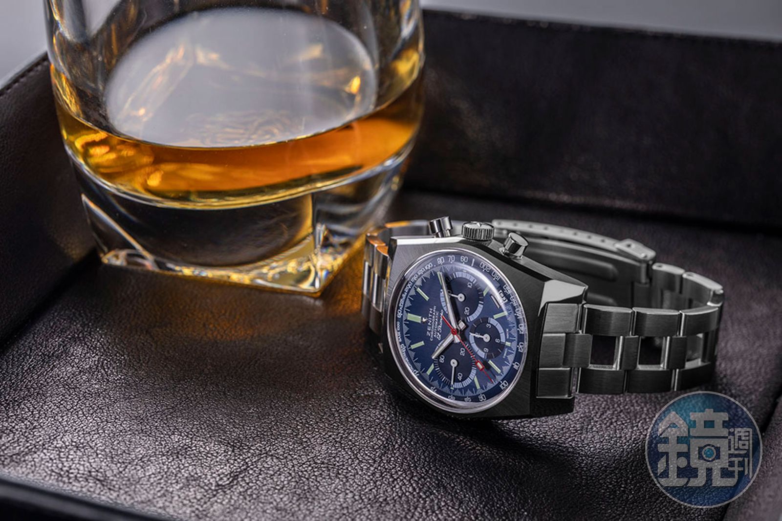 El Primero A3818「Cover Girl封面女郎」這個名稱的由來,源自於1971年錶款問世後短暫限量發售,後來出現在一本介紹ZENITH發展歷史的書冊封面上,因而讓鐘錶收藏家賦予Cover Girl封面女郎之名。El Primero A3818最顯著的特色在於面盤的設計配置,一改El Primero過往經典三色的計時盤與高對比的組合,改為全藍色來呈現,這在當時是相對較少的配色;外圈的秒鐘刻度同樣精心設計,採用「金字塔」式的高低起伏,同時三個小計時盤刻度也採用藍白相間的顏色加強視覺對比,有別於既往El Primero形成獨特的畫面。上述這些細節都被完整保留在全新的El Primero A3818復刻款上。