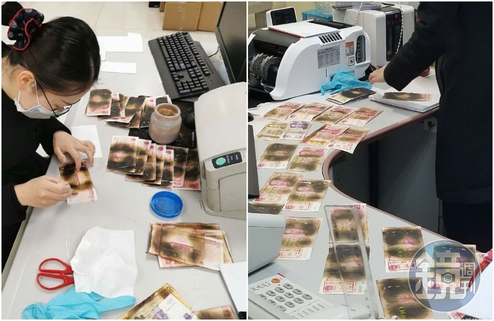 李姓女子把臉都黑了的人民幣拿到中信銀行尋求幫助,行員表示碳化部分太多,已經無法透過儀器辨別,只能人工鑑定真偽、清點數字,最後銀行為李姓女子更換3,125元人民幣新鈔。
