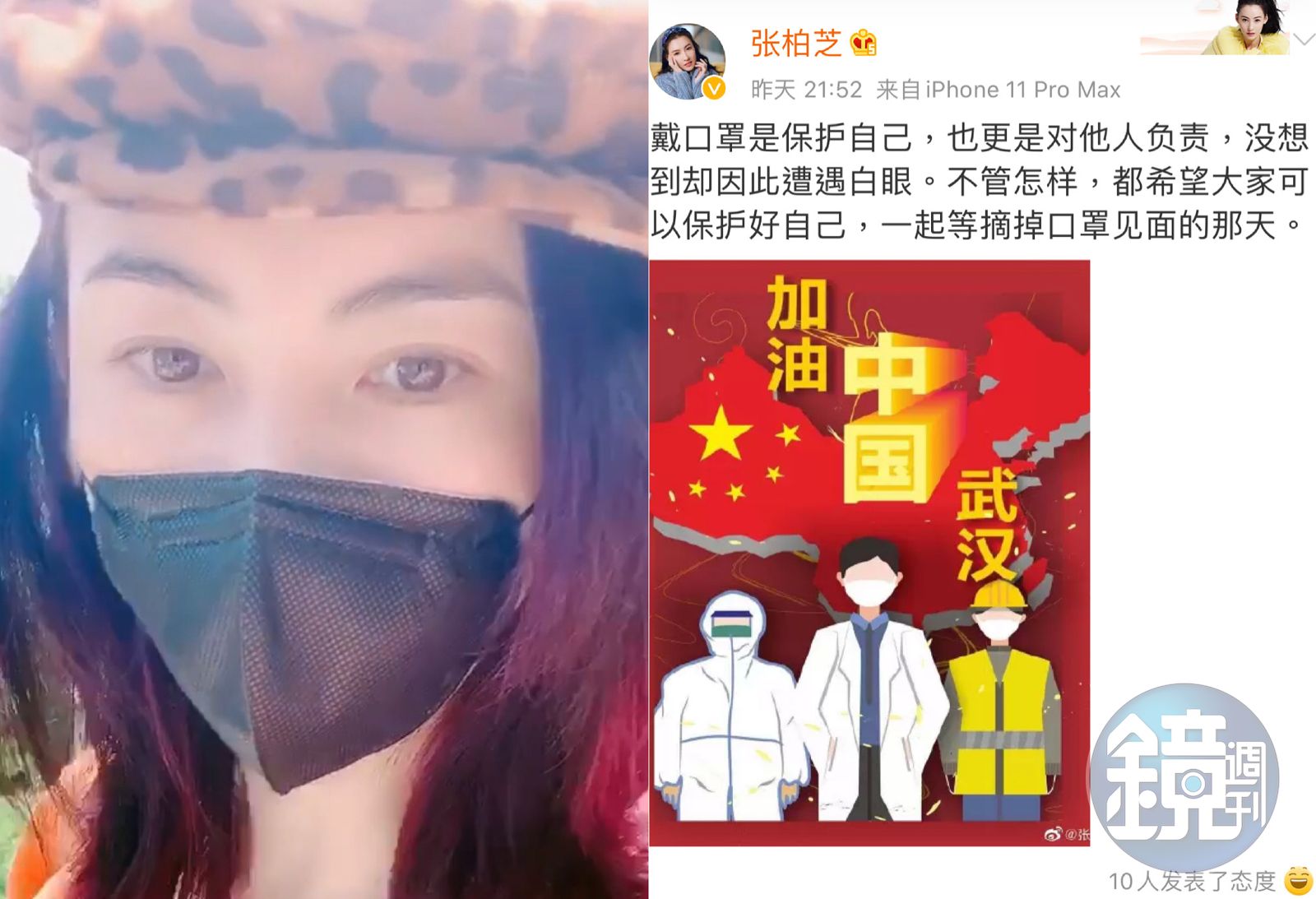 張栢芝感嘆戴口罩卻遭人異樣眼光。(翻攝自張栢芝微博、IG)發布時間:2020.03.10 13:31 臺北時間