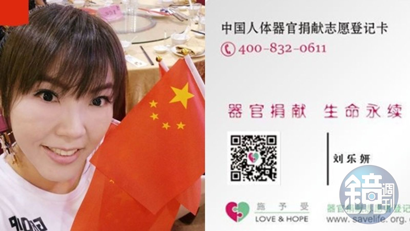 沒想到隨後網友起底,發現今年2月劉樂妍竟在微博上PO出,器官贈的志願登記卡,「我已成為中國器官移植發展基金會施予受器官捐贈志願登記第807,361位捐獻者。」