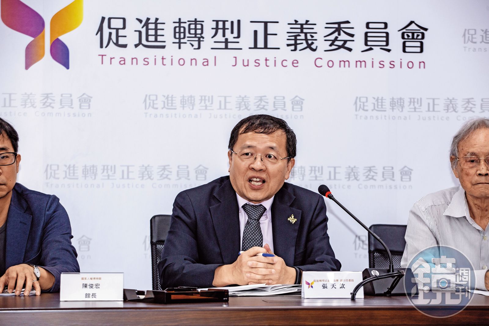 張天欽遭《鏡週刊》踢爆後去職,並被監察院彈劾並移送公懲會審理,公懲會認為,政府為平復威權統治時期所留下的歷史創傷,促進轉型正義及落實自由民主憲政秩序,而制定《促轉條例》,由主管機關促轉會專責規劃、推動轉型正義相關處理事宜。
