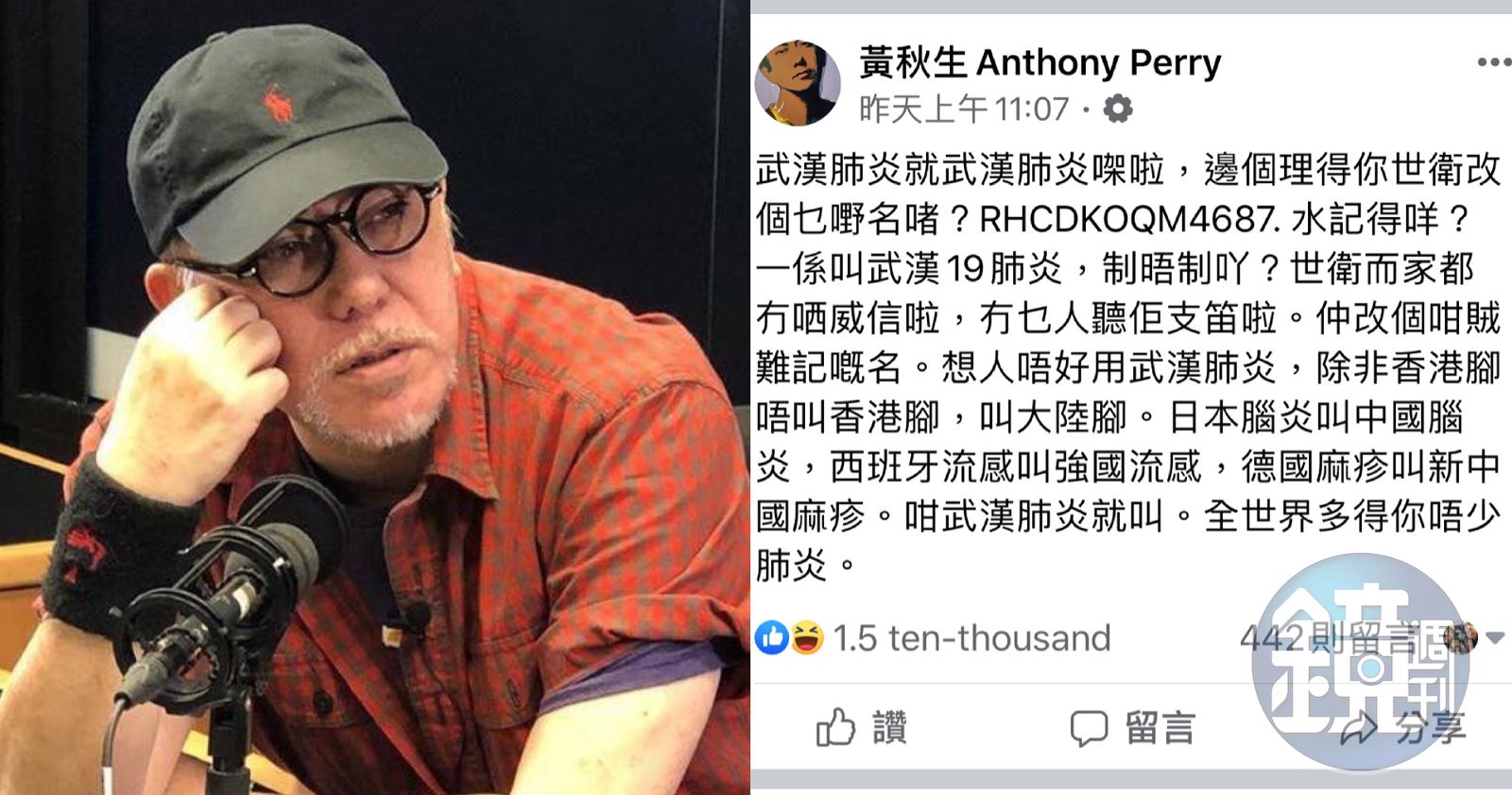 武漢肺炎正名新冠肺炎太難記 港星黃秋生酸嗆:香港腳改大陸腳