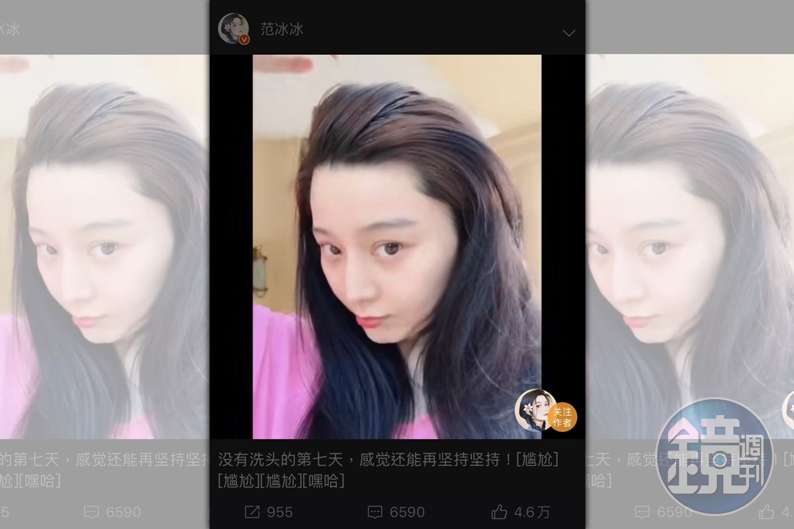 畫面中的范冰冰雖然素顏示眾,脂粉未施,但毫不失明星風範,她寫道:「沒有洗頭的第7天,感覺還能再堅持堅持!」讓網友直喊「7天不洗頭應該是做不到」。不時還能看到范冰冰用手撥弄著頭髮,仔細觀察,還真有些頭髮都「一條條」黏在一起,幸好只有「油頭」,沒有「垢面」,要不然肯定讓粉絲心中女神形象破碎。 雖然范冰冰自稱7天沒洗頭真實性無法確定,但事實上,她過去不只一次說過,自曝護髮密技就是「不洗頭」,更曾透露最高紀錄多達整整10天沒洗頭,更自嘲「這是一條有味道的回答。」
