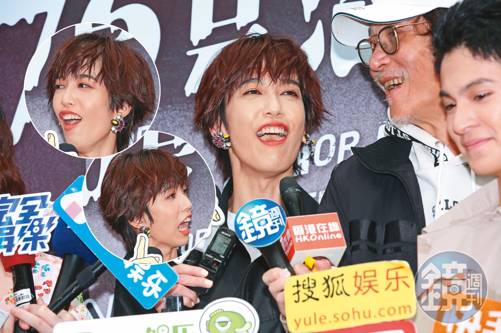 胡宇威(左)之前宣傳新戲,被問結婚時鬆口「很難說」,順便加碼想給個驚喜的求婚。小鬼最近公開露面頻繁,張開雙臂之餘,還比AV界有名的金手指。過去小鬼多次被拍到跟「天氣女孩」妞妞的交往證據,後來暗自玩完,最近各自為作品造勢。小鬼為電影站台時,雙手打得開開,還插出金手指;妞妞首錄《金牌財神爺》,除了張臂做出歡迎收看的老派動作,造型更令人滿臉問號,但也算情已逝而默契還在。