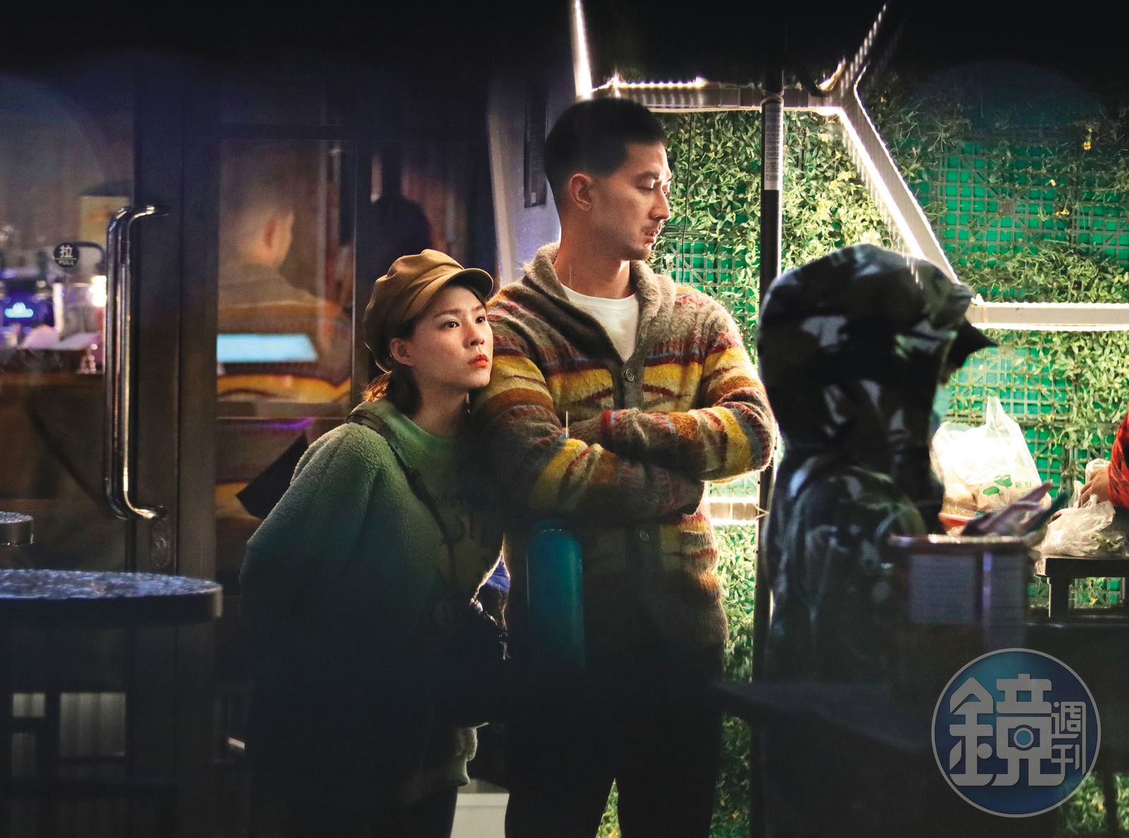 接近深夜的晚上10點,言明澔上了車拿東西,再回酒吧,接著跟熊熊出來時,竟然手上拿著她的包包!原來小倆口約會還有一大群友人作陪,但只有言明澔手上拿著熊熊的包包,這種不言而喻的「宣示主權」方法,也有種「寵愛女友」,甚至「她就是我的女人」的意味。