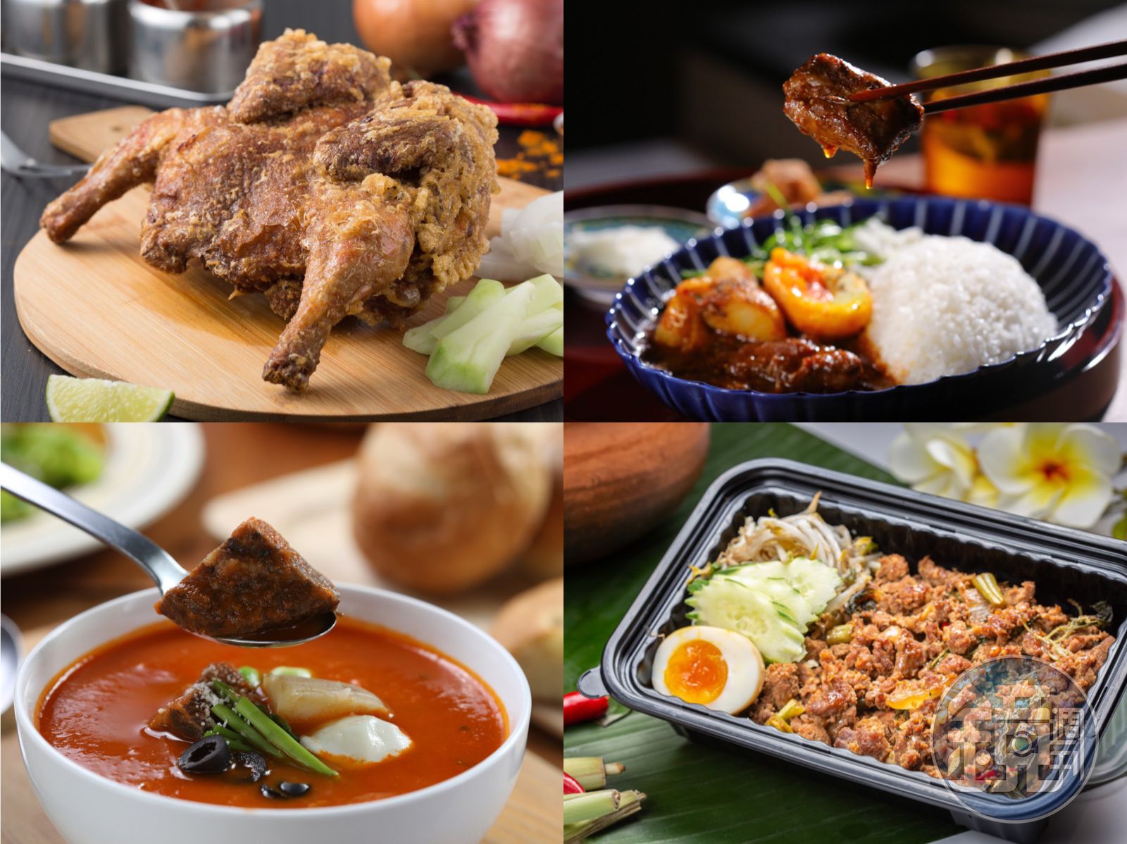 味道獨特是因為用馬來西亞咖哩粉等10多種香料醃漬一天,再裹上薄薄一層荷蘭太白粉,下鍋炸至表皮酥黃,同時緊鎖鮮美雞汁,趁熱扒開雞腿,肉汁四竄、雞肉嫩甜味豐,蘸點辣香附帶小魚乾的「No.38辣椒醬」,南洋味十足。