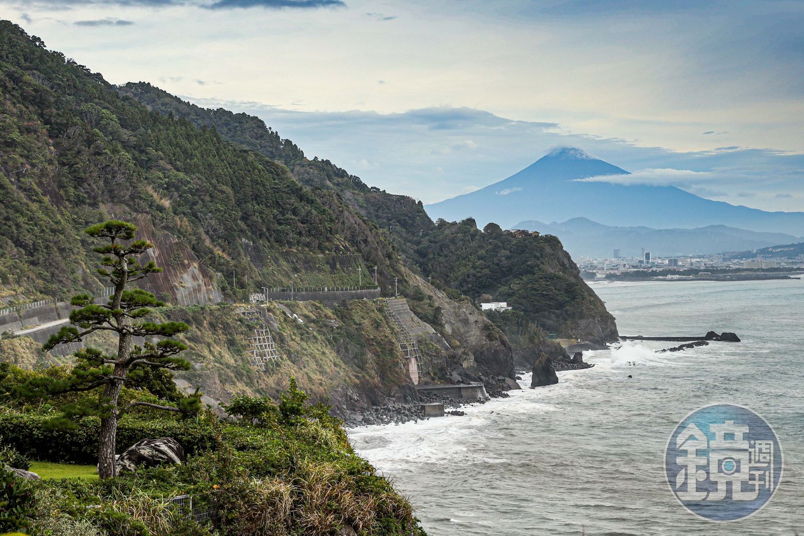 天氣晴朗之際,我們逛了博物館鐵線蓮之丘、在全日本唯二可以看見富士山的星巴克短暫享受一杯咖啡。傍晚抵達三保松原就已感到山雨欲來,強勁海風胡亂打在臉上,把每個遊客都變成了披頭散髮的瘋子,遠處的富士山因為陰鬱天氣模糊了界線,跟灰色的天連成一片,短暫停留抓拍後繼續趕路前往松風閣溫泉旅館。