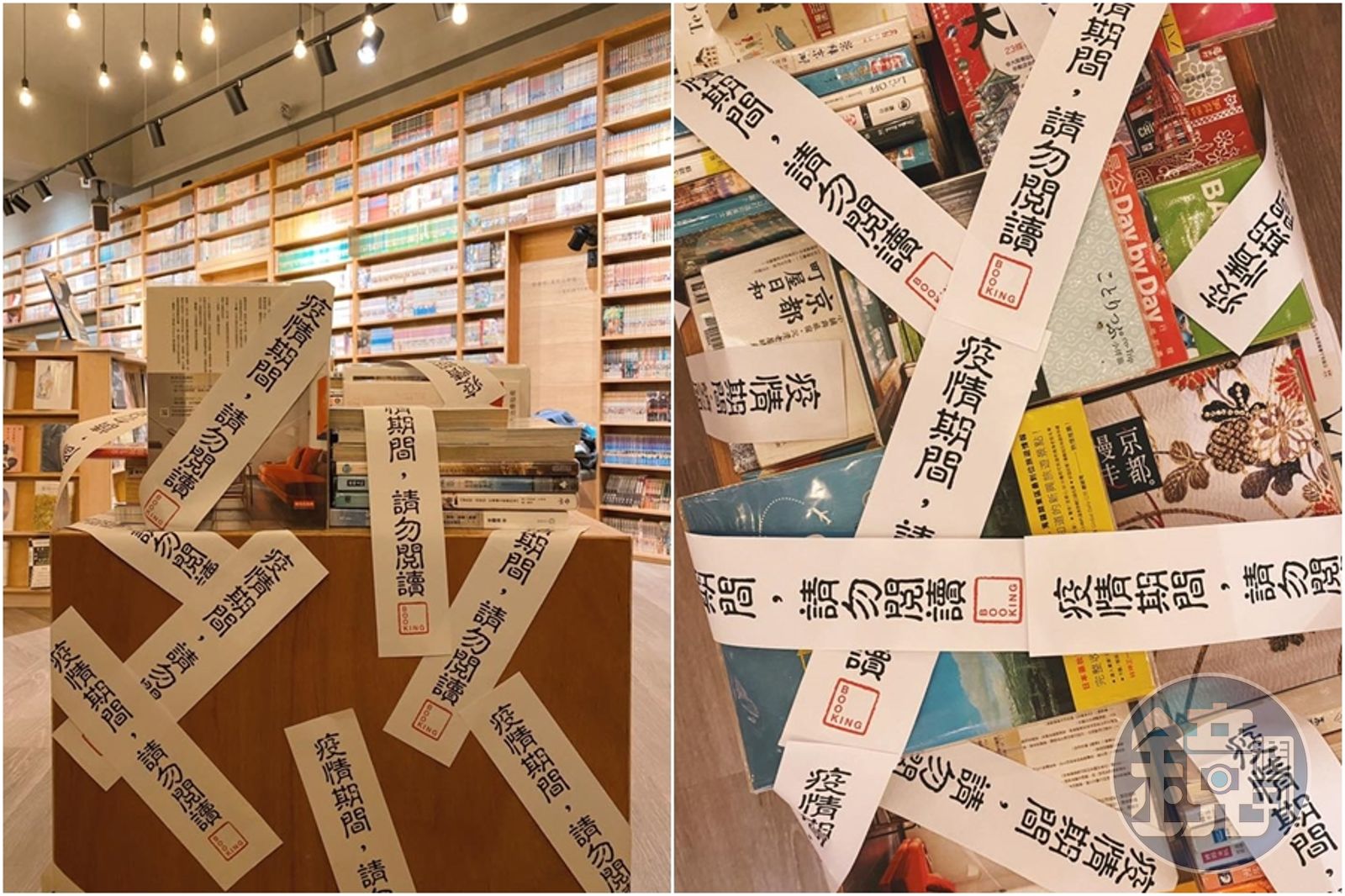 店家表示,經過反覆思考在災難面前能做些什麼,想到館內存放些許旅遊書籍,有人可能會看了幾張漂亮的照片之後心癢,腦波弱訂特價機票,因此決定消除大家的旅遊欲望,「從即刻起至疫情結束前,BOOKING店內境外旅遊書籍皆不得翻閱,我們將用封條全數封印,請勿伸手觸碰,違者將獲得永世大便都沒衛生紙的詛咒!」