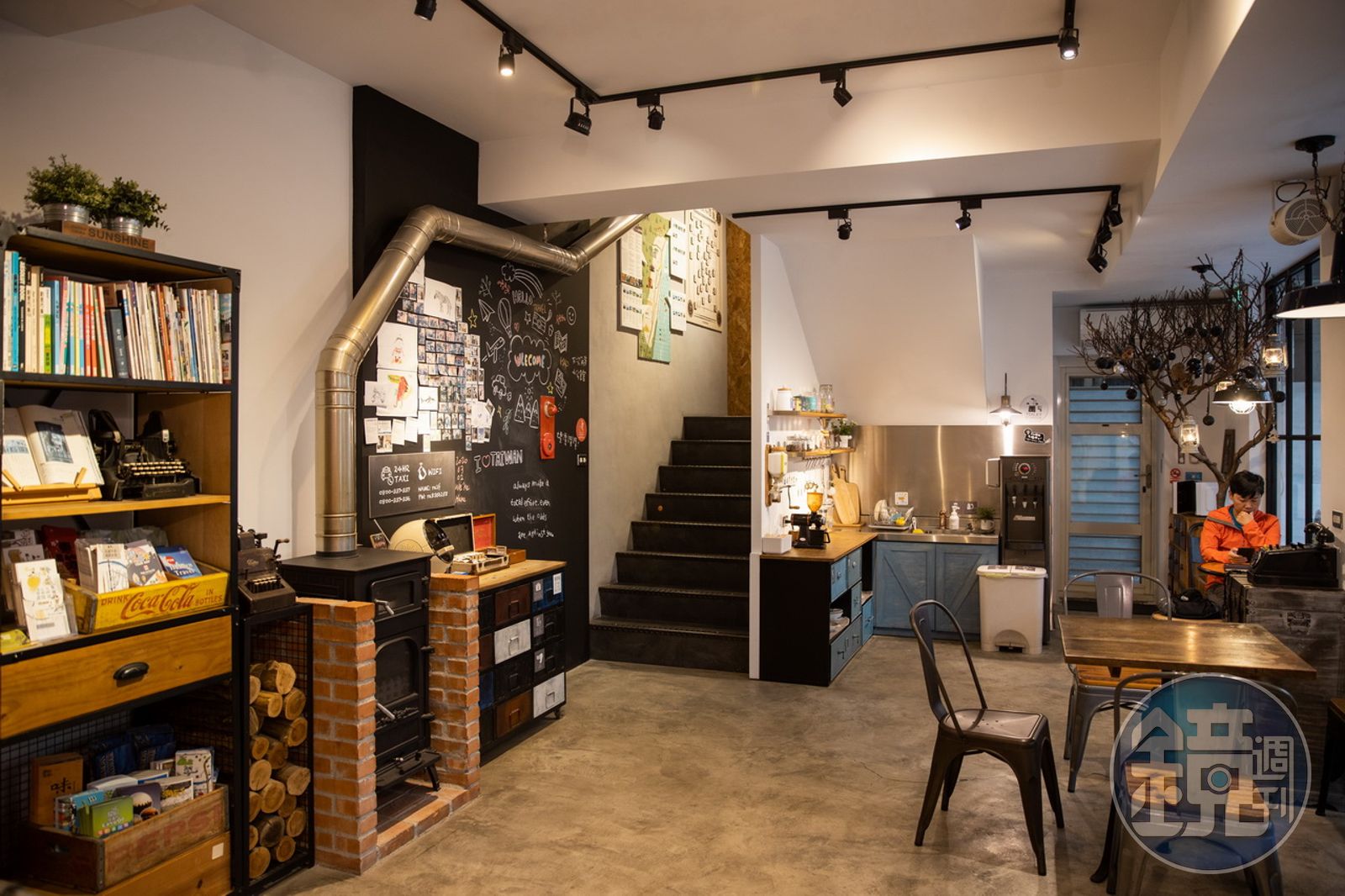 一樓的公共空間環境優雅,有舒適的座位、吧台,還有復古的老家具,活像是個小型咖啡館,不時還有遊客誤闖。周大華大方提供3種單品咖啡豆及器材,供旅人手沖咖啡,只要按著提供的步驟,就能為自己煮一杯美味的單品咖啡,搭配簡單的點心,拿起書櫃中的書籍,夜晚也不會感到無聊。