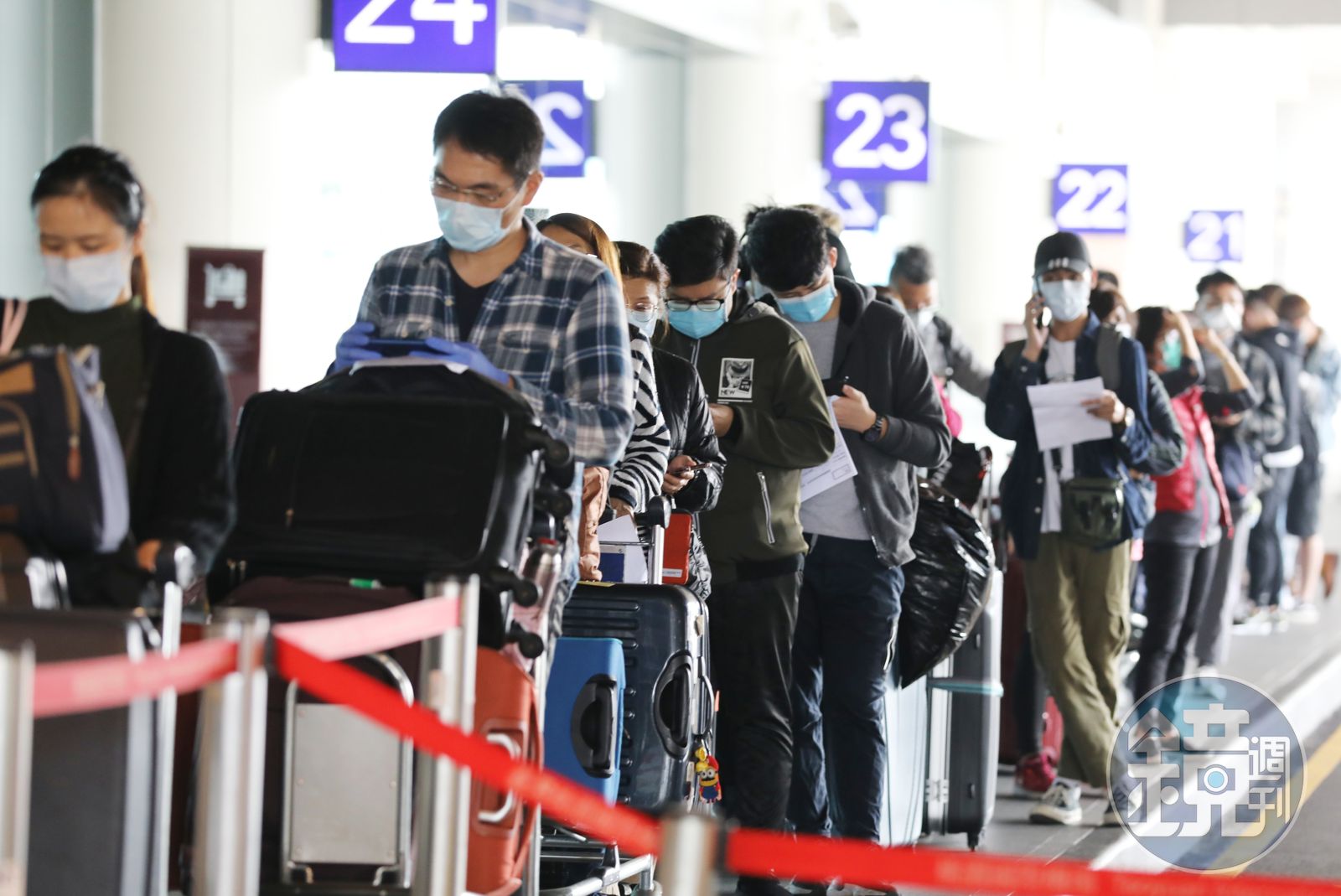 武漢肺炎連日增加確診大多以境外移入為主,機場檢疫也跟進提升採檢量能,陳宗彥表示截至今日中午,機場約有1,600人入境,預估今日會約有3,600人入境,昨(22日)則為4,600多人入境;同時,行李下機後在送到海關檢查前,都會先消毒才進入海關轉盤。指揮中心表示,21日桃機就地採檢322人,22日桃機就地採檢281人。