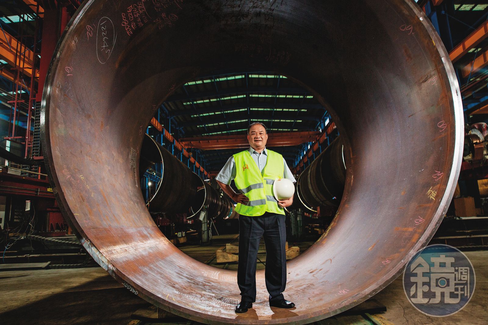 「我們台北港的廠房深度有120米長,完工以後就是觀音廠做完運到那邊對接。」在各行各業深受武漢肺炎疫情所擾,陷入經營困境之時,世紀鋼鐵集團卻不受影響。為了下半年要交貨給丹麥風電廠沃旭的81支Pin Pile,工廠24小時不斷電、員工分3班加緊趕工。董事長賴文祥巡了一圈、確認進度之後,才脫下工程帽與護目鏡,回到辦公室。