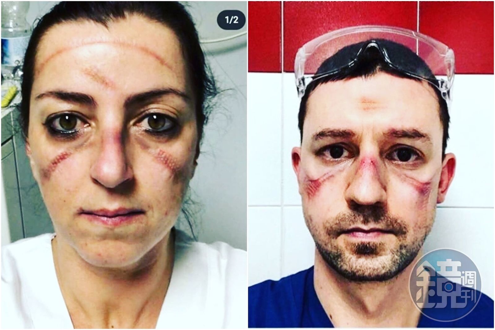 IG帳號covid_nurses日前po出多位醫護人員,拿下護目鏡後臉上被勒出暗紅色壓痕與瘀傷的照片,表示要向全世界醫護致敬。