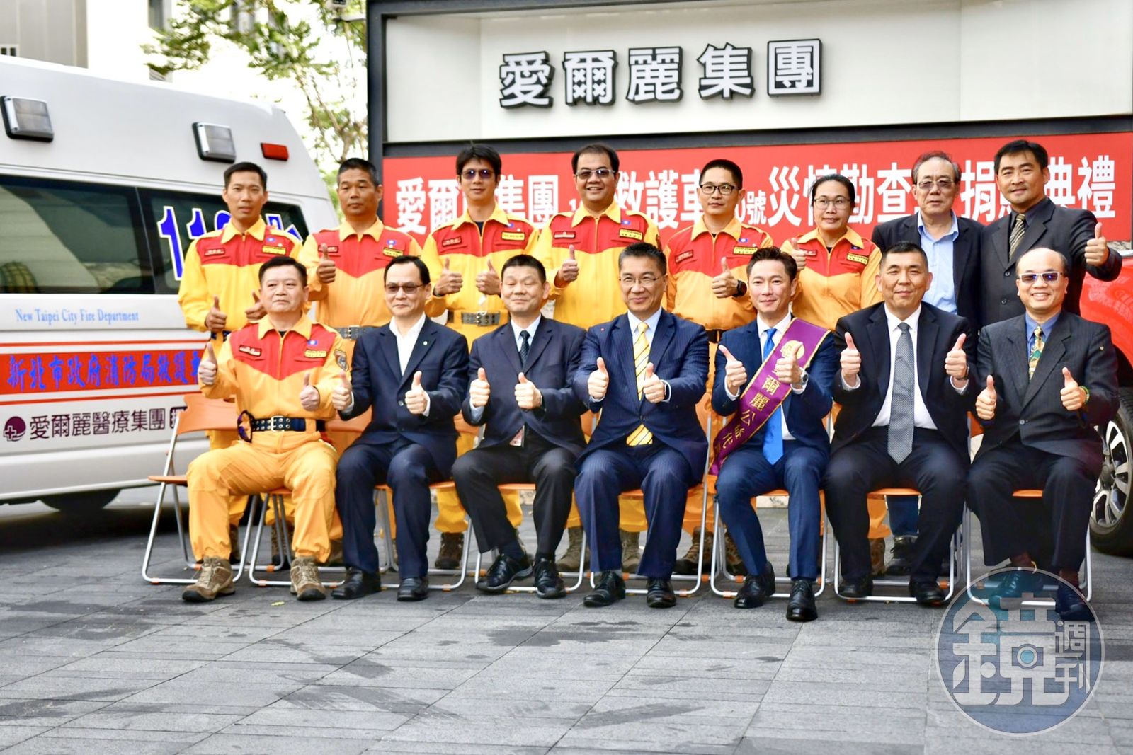 為感謝消防弟兄辛勞,照顧國人生命財產安全,加上近來武漢肺炎(亦稱新冠肺炎,COVID-19)疫情嚴重,愛爾麗集團特別捐贈消防救護車及防疫裝備,包括內政部徐國勇部長、消防署長陳文龍、新北市政府消防局長黃德清、與愛爾麗集團董事長常如山、及該集團公益大使謝祖武,均出席見證捐贈儀式。