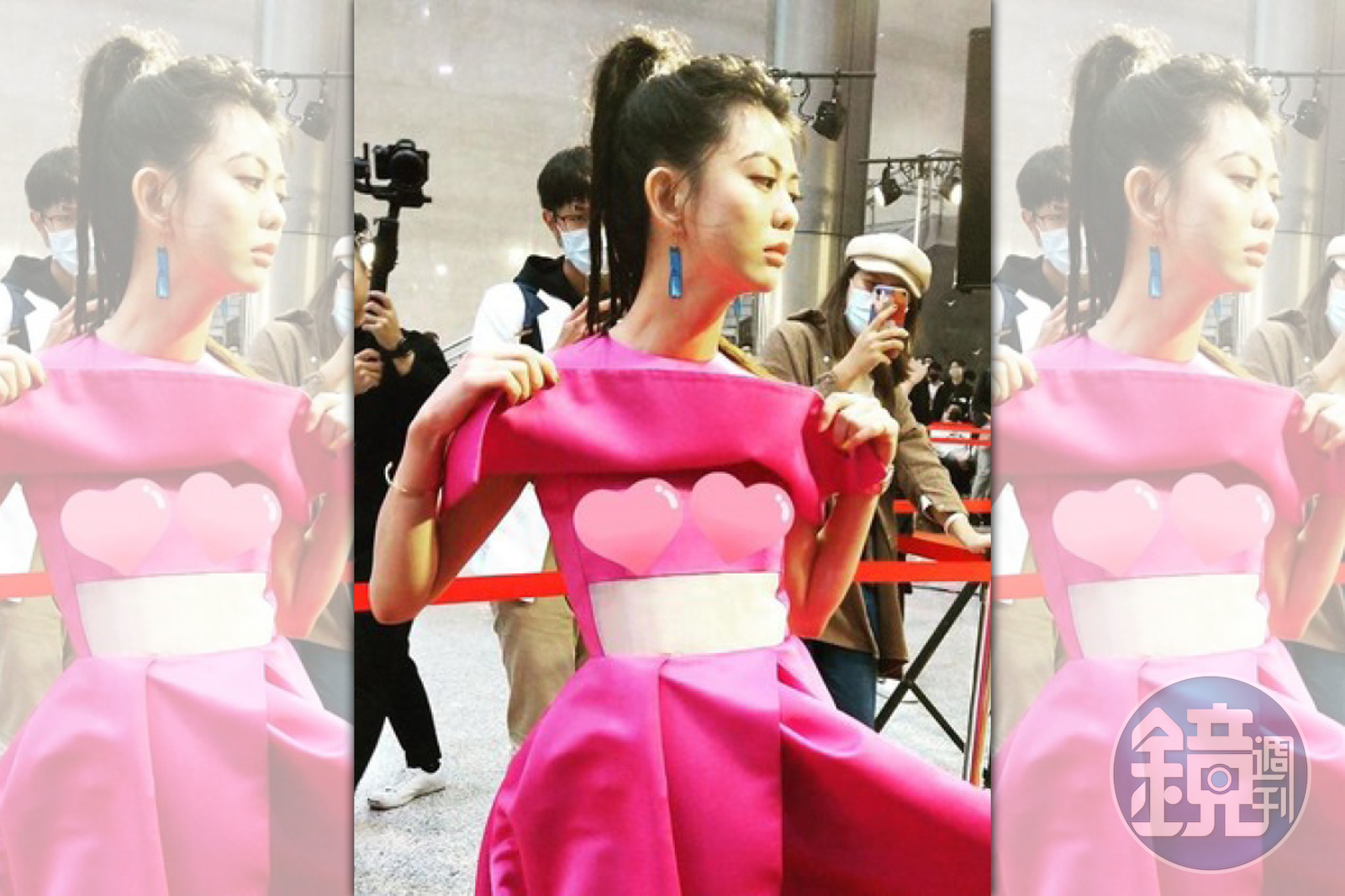 白癡公主伸手將胸前整片布料掀起來,但畫面P上愛情圖案擋住,令不少網友好奇直呼「拿開愛心喔」「那兩顆愛心讓我非常不爽」。不過,她在走鐘獎的紅毯上也做出相同動作,女主持人大叫:「剛剛是掀起來了嗎!」走紅毯時,白癡公主突然蹲起馬步,浮誇動作讓現場眾人驚呼連連,畫面PO網後,也令不少粉絲笑虧,「深蹲?」引起熱議。