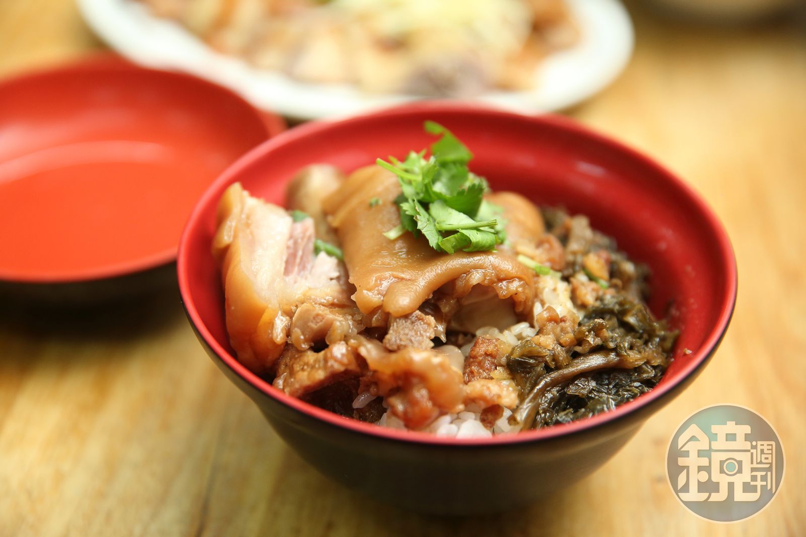 廖憲平點餐還不猶豫,「他們的豬腳飯是整塊的,用中圈或是豬蹄,配上在地的梅干菜,超下飯。」老滷滷的豬腳用筷子輕撥就能骨肉分離,飯量幾乎是家用碗二倍的份量,即使剛吃完蛋糕,還是可以吃完滿滿一大碗,搭配喝了會回甘的苦瓜排骨湯,中和豬腳飯難免的油膩,一頓美食讓廖憲平充飽電,還有動力回家繼續看公文加班。