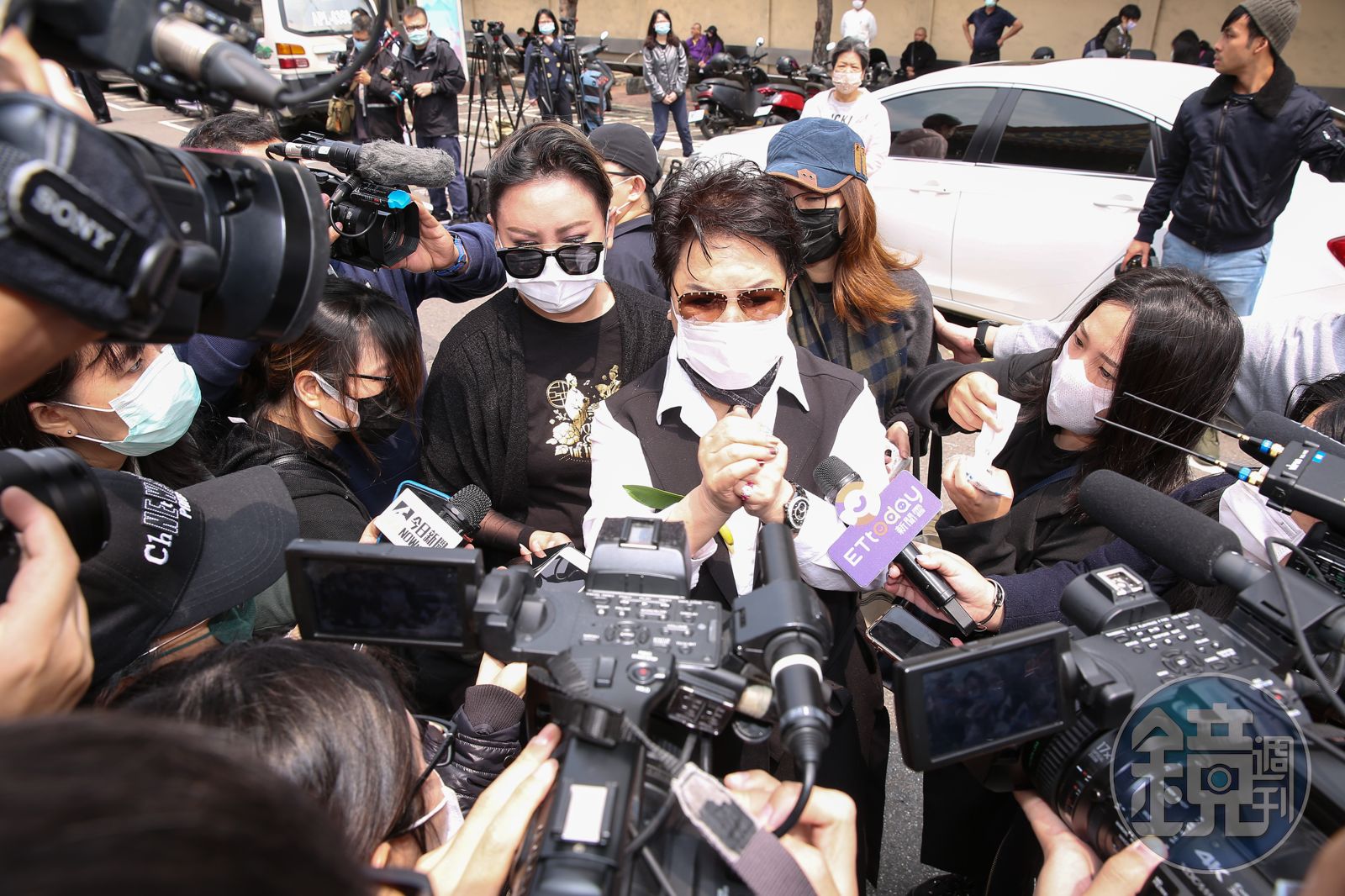 楊麗花和陳亞蘭一早就穿著全身黑衣,戴著口罩、墨鏡前往告別式會場,即使看不見眼睛,都能看出他們臉上滿滿的哀傷神色,因為新冠肺炎疫情的影響,楊麗花無法到醫院探望老友的最後一面,讓她留下遺憾,她和陳亞蘭坐在告別式會場第一排,看著螢幕上的回顧影片頻頻拭淚,現場瀰漫中哀戚氛圍,陳亞蘭念祭文時,更是悲傷到幾乎要暈眩。