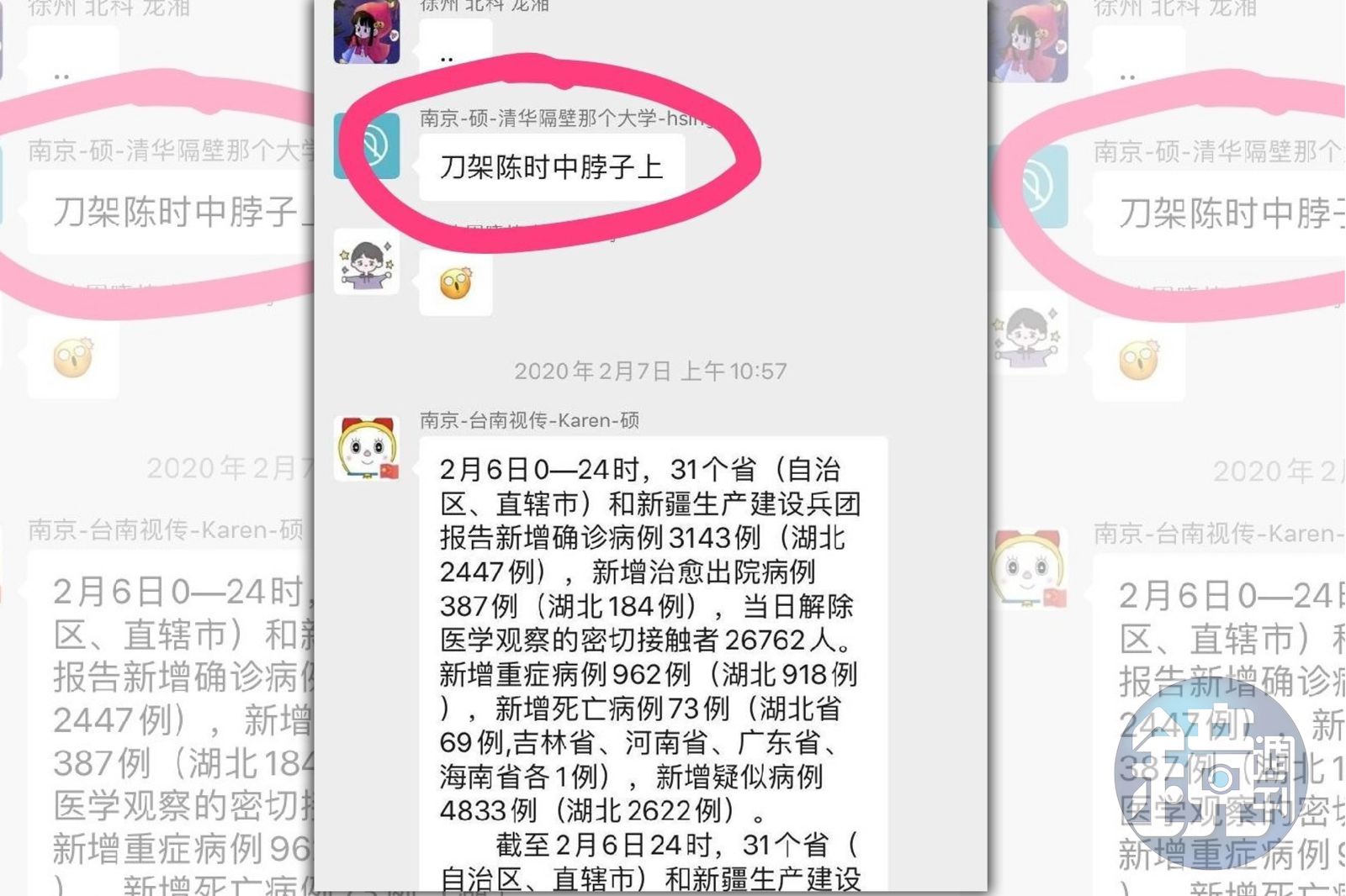 據社群軟體《巴哈姆特》的留言來看,疑似是一群台灣的中國留學生對話群組,名稱為《19江蘇小朋友赴台旅遊團》內從談及台灣政治,揚言「刀架陳時中脖子上」「真想把陳時中按到地板上摩擦」「希望台灣疫情大爆發」「希望中招的全是台獨」等 ,對話內容充滿恫嚇、歧視和攻打台灣的言論。