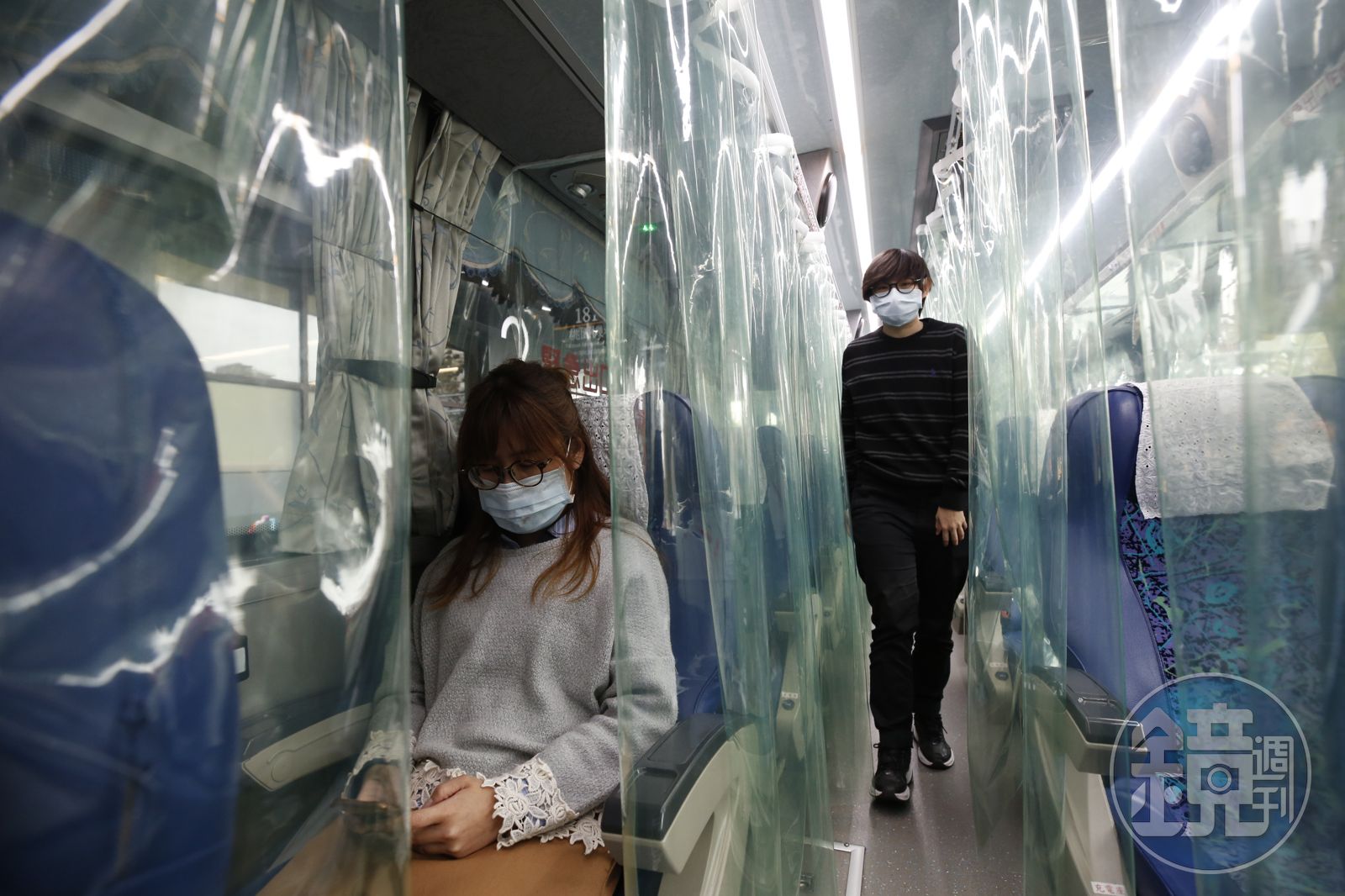 現在搭乘大眾運輸、計程車都強制民眾戴口罩。圖為國光客運防疫專車,資料照。