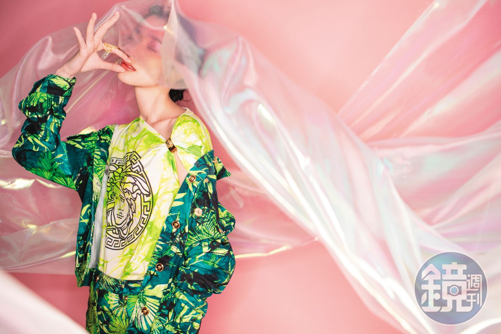 【靚時尚】花花世界 紮染印花梅杜莎圖騰T恤 NT$28,000 by VERSACE、叢林印花牛仔外套 NT$62,500 by VERSACE、叢林印花牛仔短裙 NT$20,000 by VERSACE、Tribales金色薊花與紫色玫瑰石珍珠單邊耳飾 NT$16,000 by Dior、Jardin金色戒指 NT$17,000 by Dior。 發布時間:2020.04.17 05:58 臺北時間