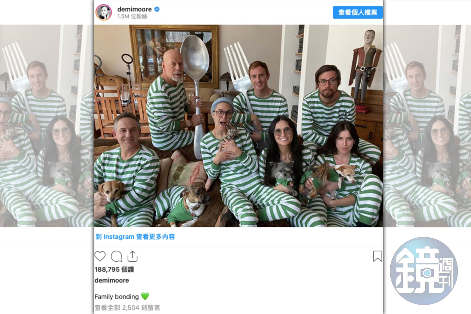 因為這樣實在太不尋常了,艾瑪還在老布跟黛咪的「全家福」底下留言,「這真的好棒。好愛也好想念你們大家。」整個就讓人看不懂。反而是布魯斯跟黛咪生的小女兒塔盧拉,很好心地跟網友解釋,「嗨!我們決定一起進行居家防疫,一起共度這27天,採取所有必要的措施。請大家都待在家裡,記得洗手!」