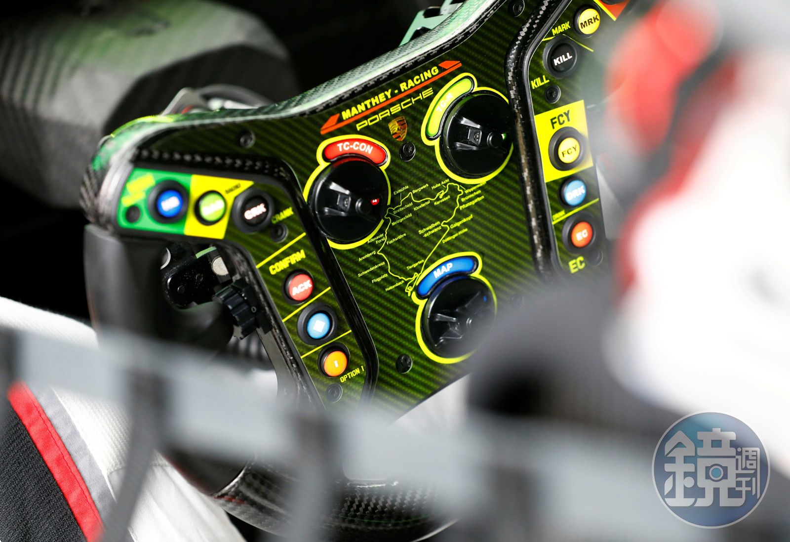曾在美國科羅拉多州雲端競速賽事中四度奪冠的法國賽車手Romain Dumas回憶2012年一次特殊情況:「在賽事進行的當下,正確的按鍵佈局和最佳的操縱就手度是至關重要,當時我駕駛著Porsche 911 GT3 R賽車馳騁於Pikes Peak派克峰賽道上,準備迎接勝利,經過下雨後開抵海拔較高的路段則下起大雪,我就在那裡失去得勝先機。為什麼?由於方向盤上安裝了一組雨刷控制按鈕。必須按下一秒鐘以啟動間歇性雨刷功能,而後再長按三秒鐘保持持續作動,這實在太複雜了。派克峰上彎道一個接著一個,當我把雨刷調至正常作動時,我已經失去了太多的時間」。類似的前車之鑑,讓人們在研發過程中產生了決定性的反思。