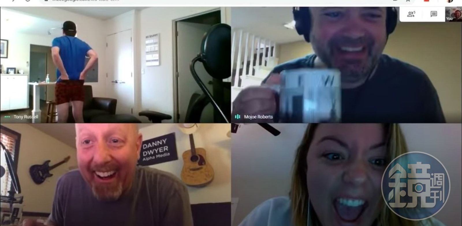 「武漢肺炎」(亦稱新冠肺炎,COVID-19)全球疫情延燒,不少人待在家中工作,一名名叫Tony的男子日前透過視訊和同事開會,會議結束後,Tony起身背對鏡頭舒展筋骨,原本嚴肅的3位同事看到不知道是忘記沒穿褲子還是忘記鏡頭沒關的Tony,忍不住驚訝地張大嘴巴,接著哈哈大笑。