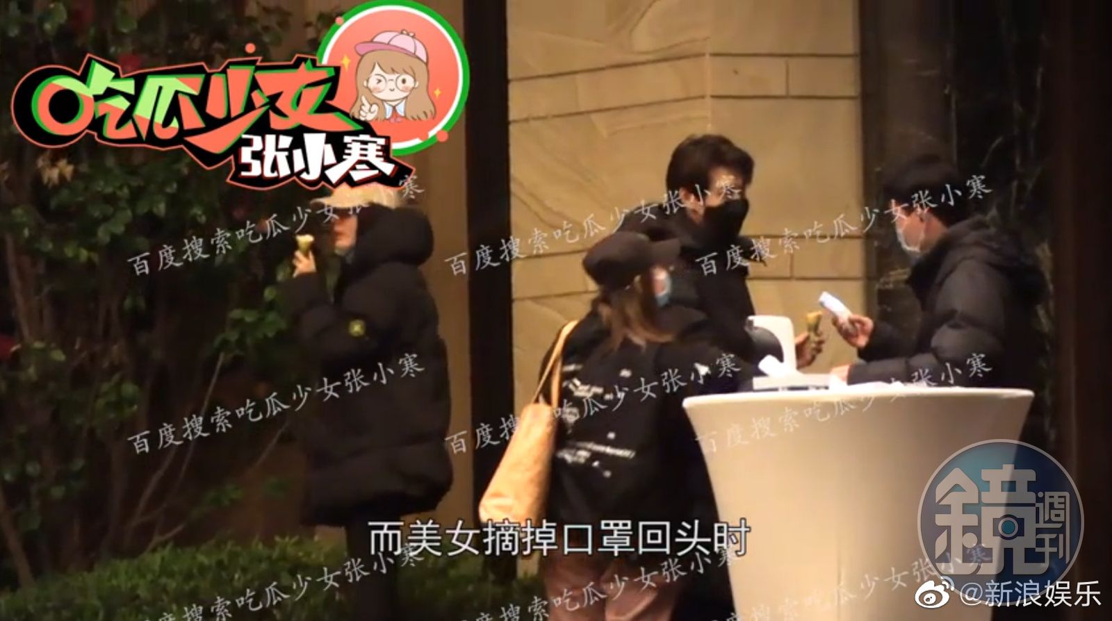 楊冪與魏大勛同車回下榻飯店,且在門口吃冰淇淋。(微博圖片)發布時間:2020.04.13 14:27 臺北時間