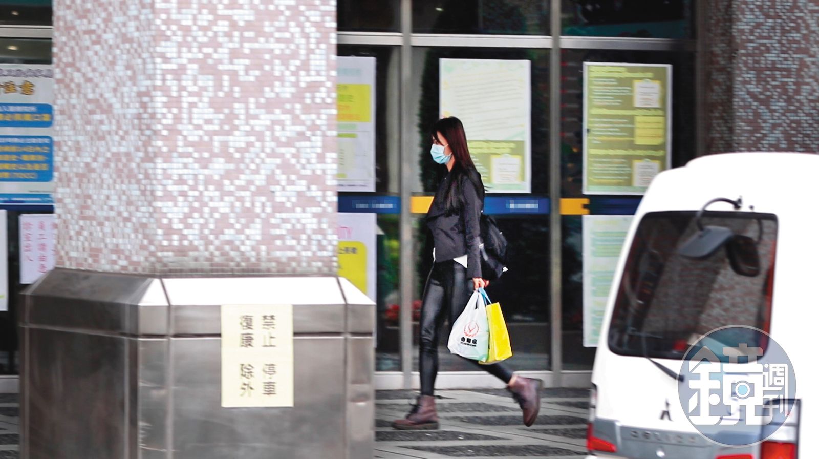 4月11日早上11點多,莉婭從住家走出,手上提著一袋食物與黃色購物袋,裝有水、零食等,然後搭上小黃直奔醫院。到院後,她將手上的幾袋食物拿到檢查站檢查,不久後就從醫院側門離開。她搭捷運回家時,一路上都低著頭滑手機,不過表情看起來有些心神不寧。
