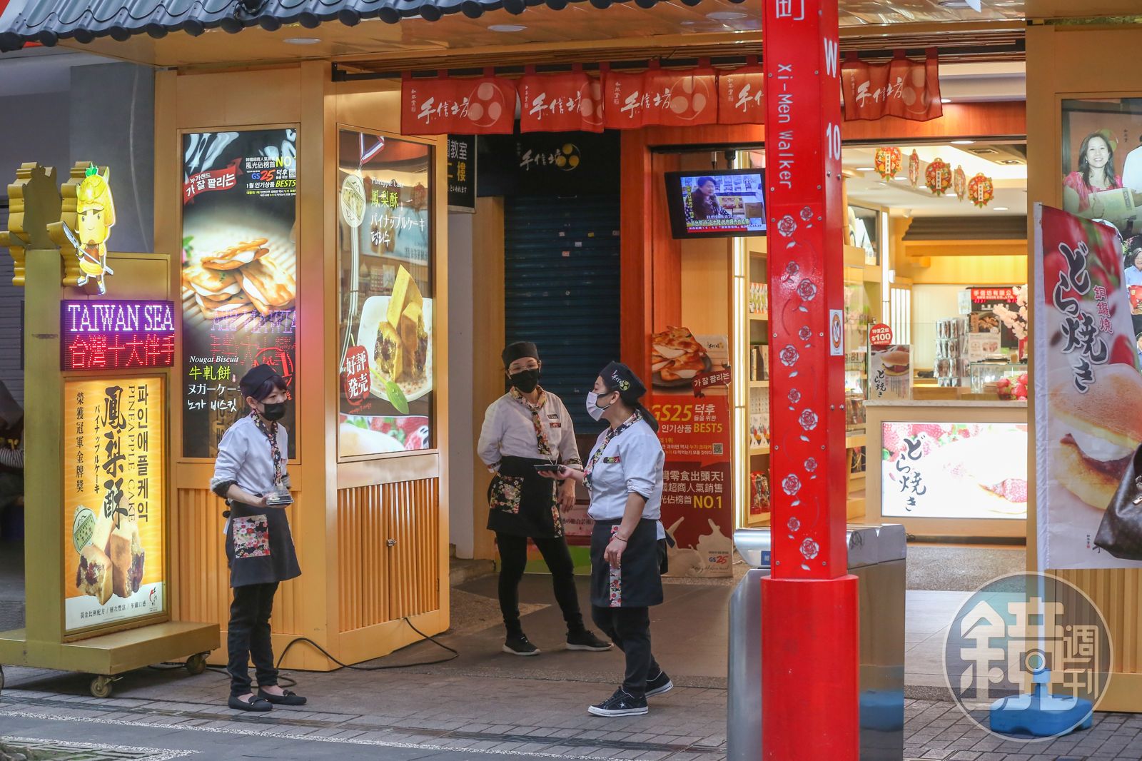 「現在生意最差的就是伴手禮店,因為他們有95%的生意都來自觀光客,當地人根本不會去買。」劉家鑫透露,西門町伴手禮店雖達二十多家,背後老闆其實只有4、5人,「就我的了解,這些人每個手上有4、5家店,現在最慘的,有人原本5家店,一口氣就收掉了4家,整體來講,伴手禮業者已經撤掉7、8成了。」