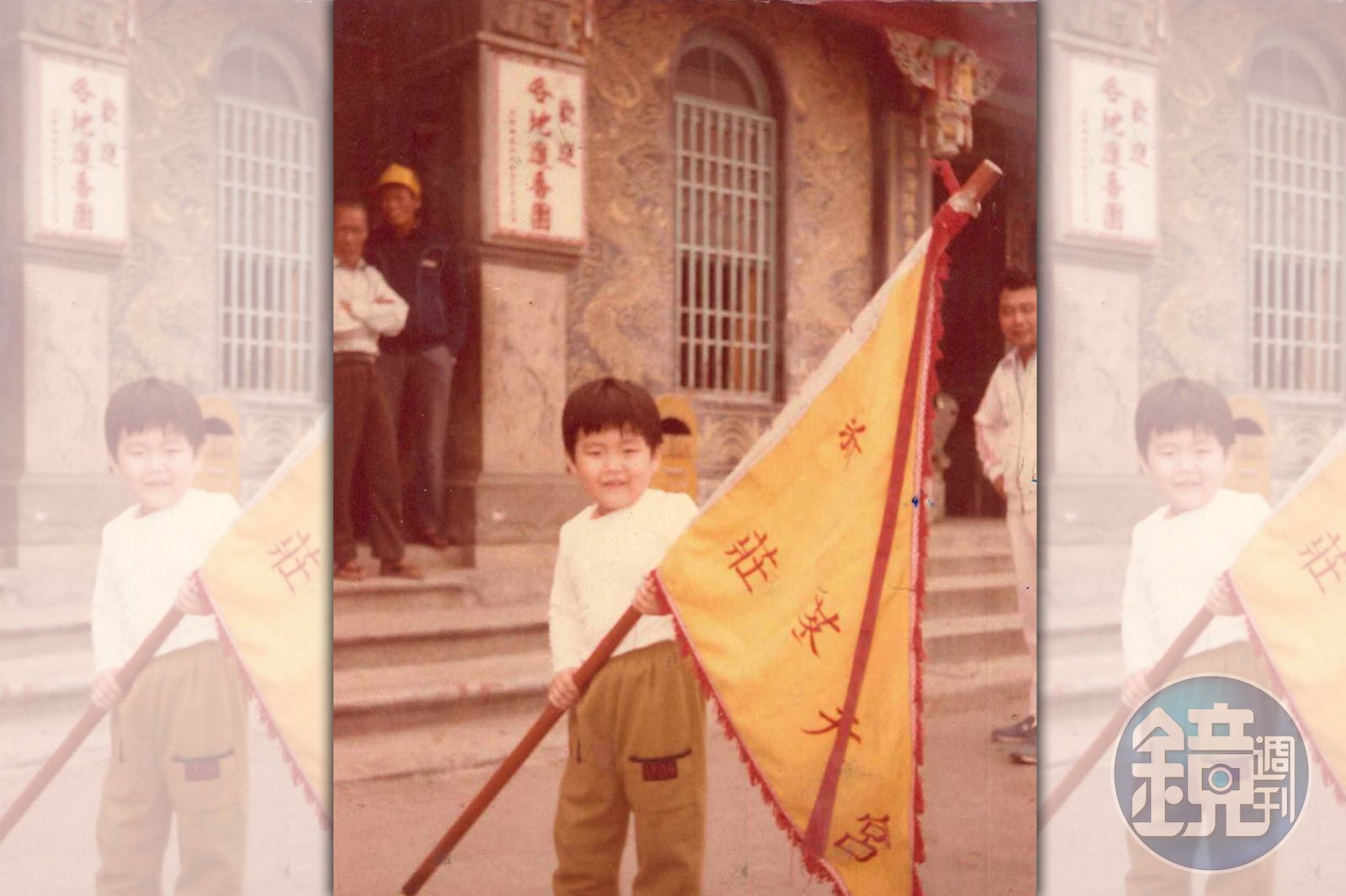 母親讓他給玄天上帝當乾兒子,幼稚園時,還曾1個人睡在宮廟的神壇下1、2個月,造就他與宮廟的不解之緣。