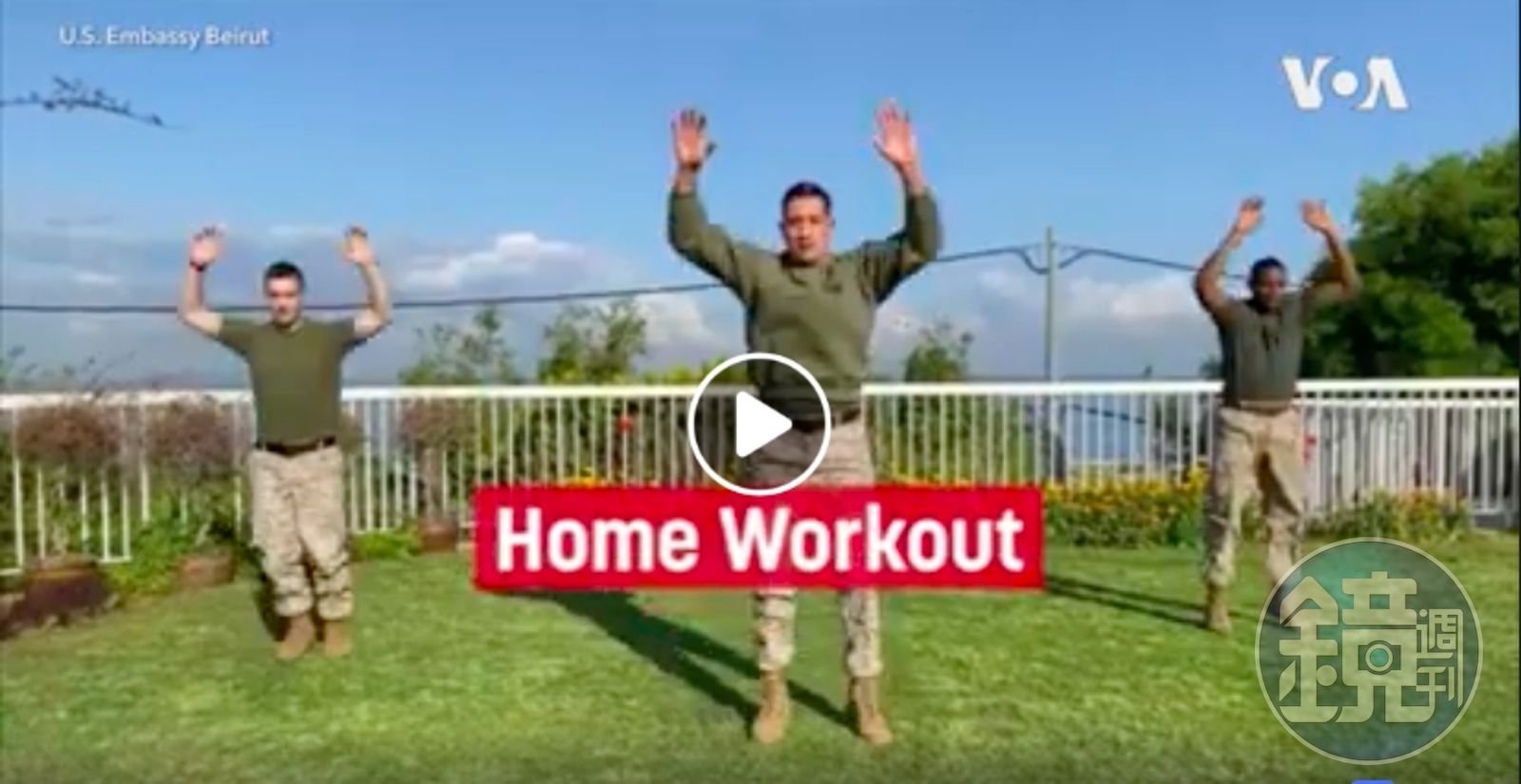 根據VOA美國之音中文網,美國海軍陸戰隊為居家隔離民眾示範6個簡單動作,邀請民眾可以在家跟著做,其中包含基本的伏地挺身、仰臥起坐,美軍強調,如果覺得難度太高,民眾也可以膝蓋跪著進行伏地挺身。