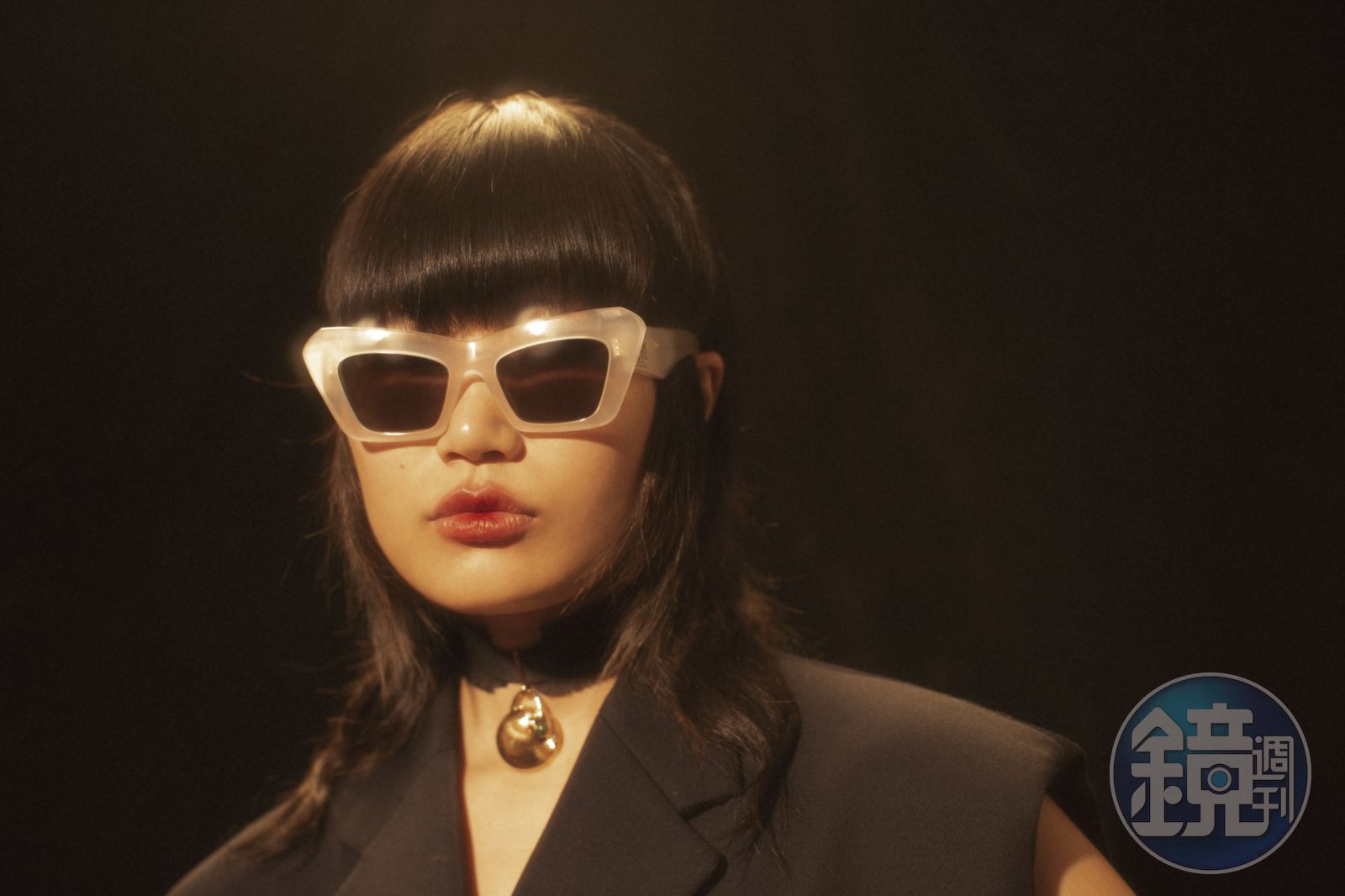 喜歡古靈精怪的搞怪風,這一季就絕對不能錯過這副GUCCI的太陽眼鏡,模特兒在秀上已經夠吸睛,現實生活中妳也可以戴上它,搭配一件反差極大的淑女洋裝,宣告自己就是個怪怪美少女!