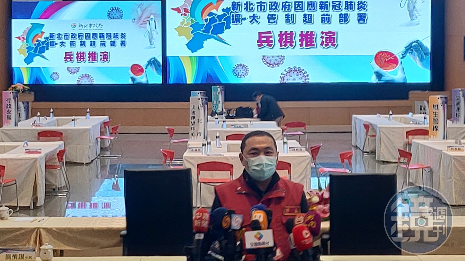 新北市政府今日舉辦因應新冠肺炎擴大管制超前部署兵棋推演,兵推結束後,市長侯友宜接受媒體聯訪,就有媒體問他會不會公布新北市一名敦睦艦隊確診官兵回家的足跡。