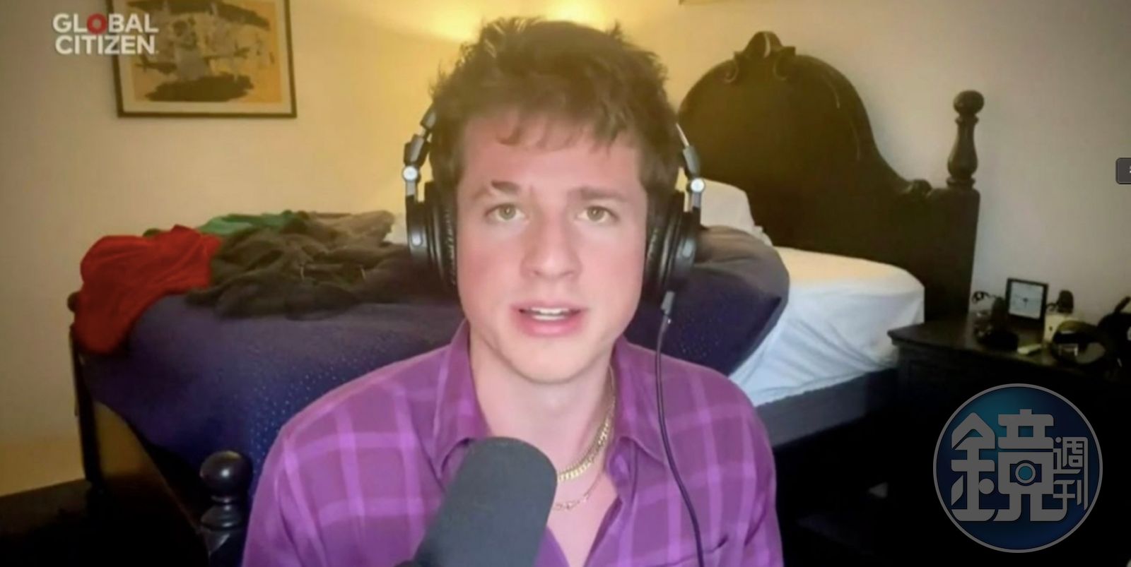 CP查理12年沒鋪過床 網路直播留言超歪樓 CP查理在「One World :Together at Home」直播演唱會表演,但大家都把焦點放在身後床上亂七八糟的東西上。(翻攝自Global Citizen官方YouTube) 發布時間:2020.04.21 12:40 臺北時間
