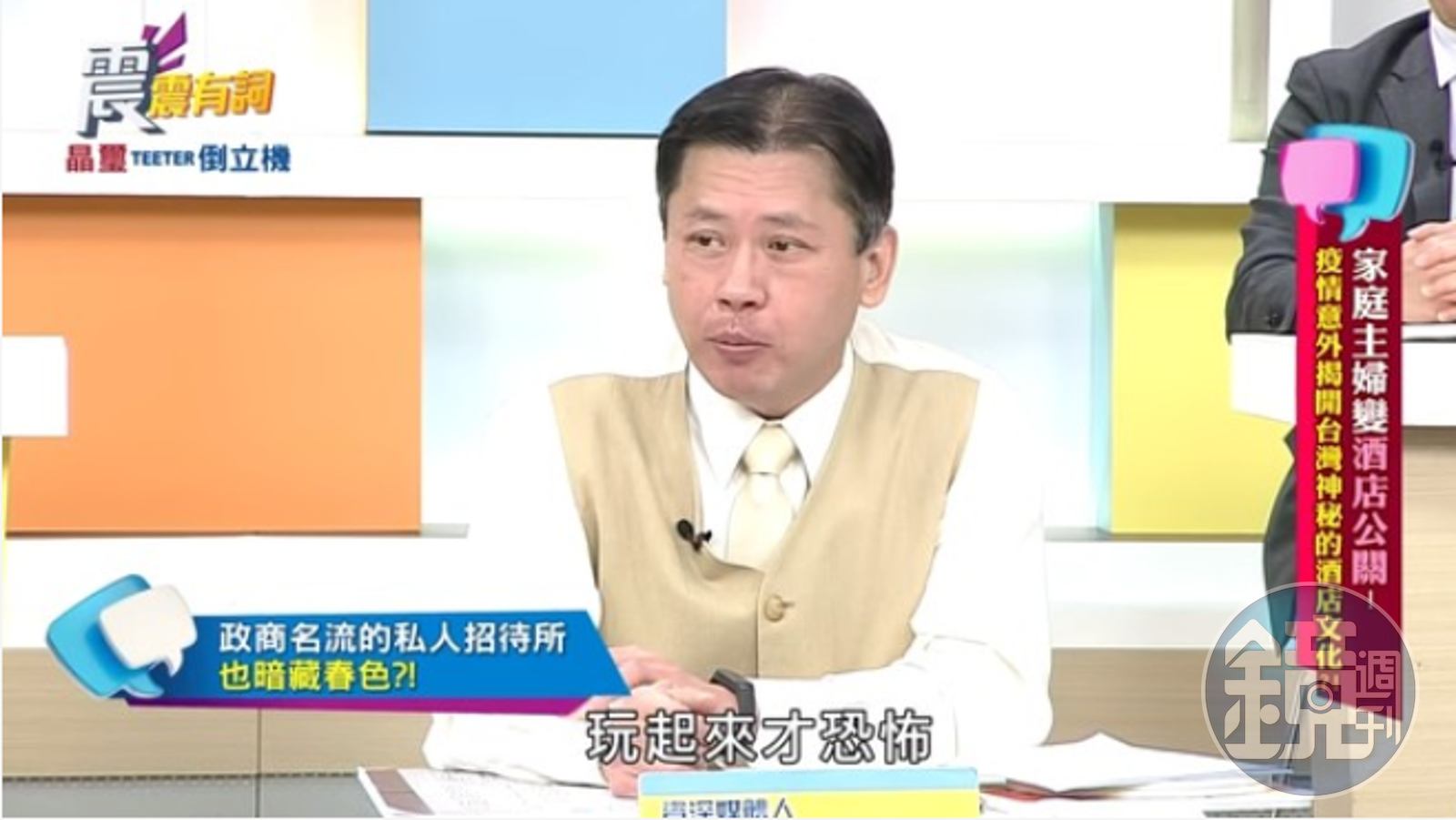 丁學偉還舉例其中一項「螢火蟲」遊戲,荒淫至極不堪入目,一連串誇張玩法,讓現場眾人震驚不已。