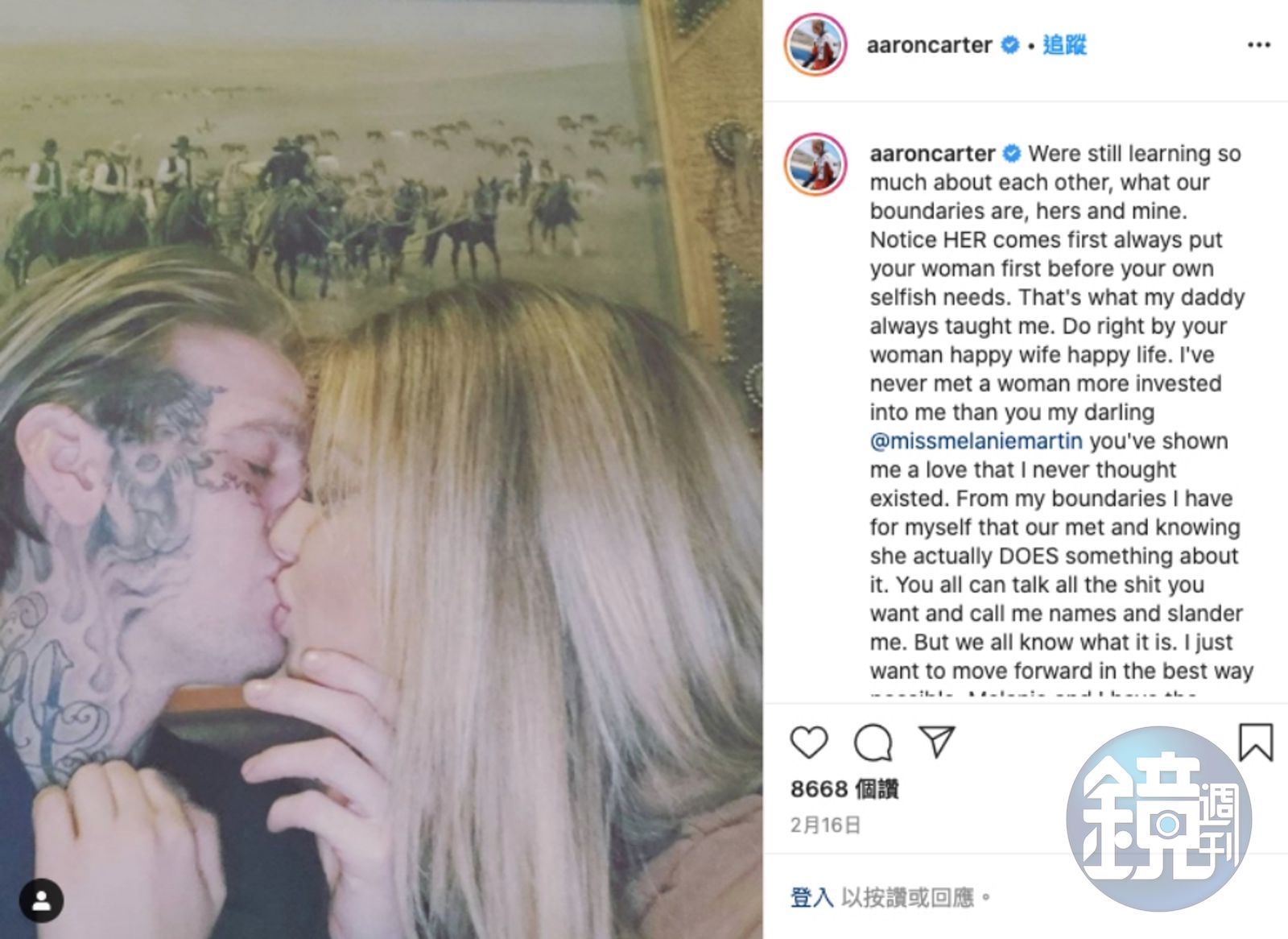 雖然懷孕生子是好消息,但艾倫卡特與梅蘭妮的關係是在今年1月才正式對外公開,之後在2月還寫了一篇長文跟大家分享兩人的交往,「我們都有共同的人生目標,我向她展示了愛的另一面,這是我以往所不習慣的,所以有時候會讓兩人做出不同的事情。很顯然的我們倆有不同的生活習慣,她現在已經搬來跟我同住,每天都會在家花上超過12個小時在溝通。」