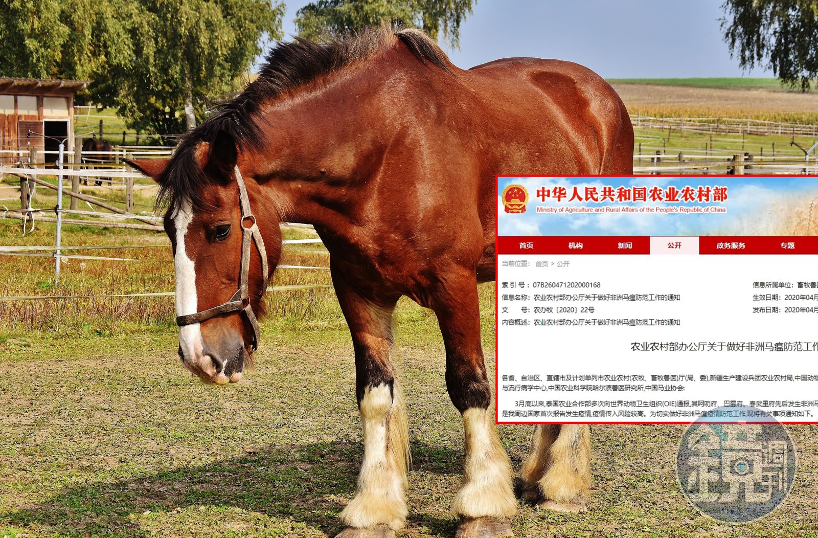 中華人民共和國農業農村部於官網發布通告表示,泰國農業合作部自3月底以來,多次向世界動物衛生組織( OIE)通報境內的呵叻府、巴蜀府、春武裡府先後發生非洲馬瘟疫情,因最近疫點離中國邊境的直線距離不到800公里,也是中國周邊國家首度報告發生疫情,讓中國相當緊張。