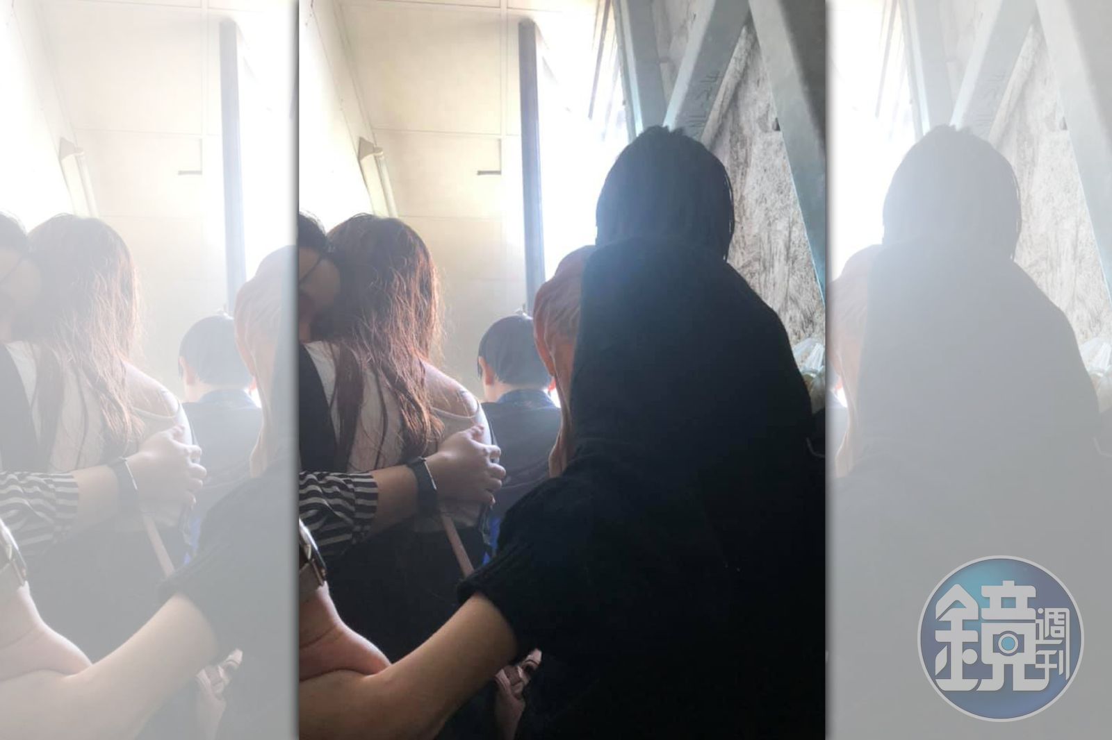 邱女與友人眼見情況不妙,趕緊往樓梯逃生,邱女回憶起當時,樓梯間濃煙密佈,甚至開了手機的手電筒也看不到地板,無法行進。周圍約20多人都驚慌地撥119求救,但線路全被佔滿,現場充斥不安的慌亂氛圍。