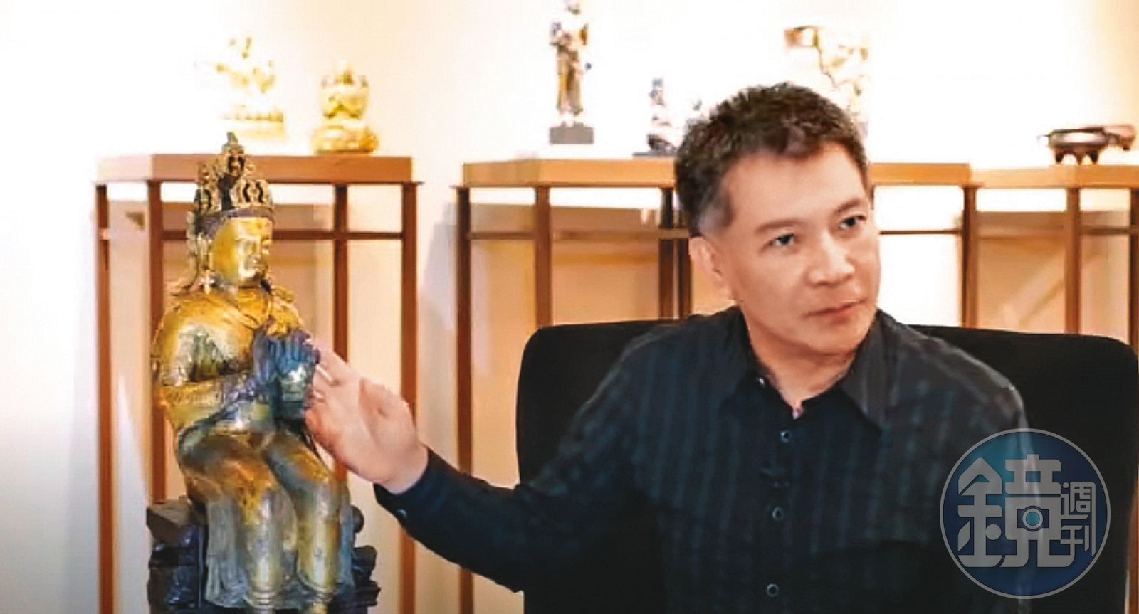 曾是歷史科補教名師的陳國恩,涉嫌以投資古董詐騙講經課學員逾8千萬元遭起訴。圖為2016年陳國恩講解彌勒菩薩坐像,現他已剃髮出家。(翻攝YouTube)