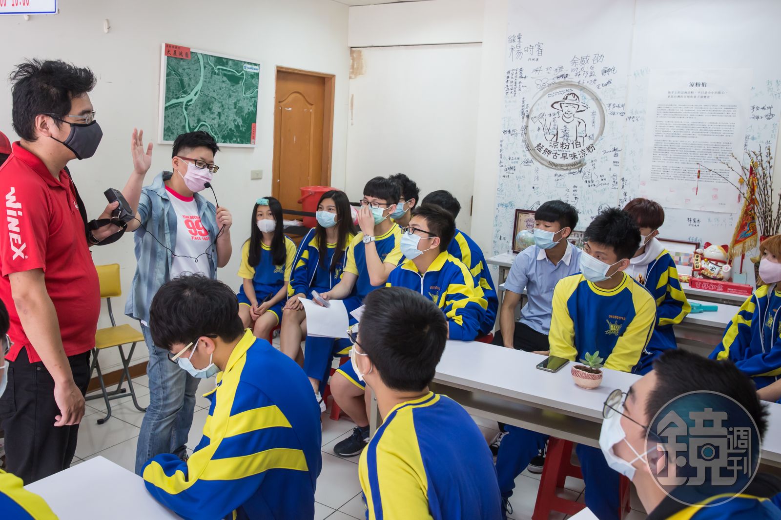採訪這天,下午2點多一些涼粉就已售罄,辜凱鈴帶著我們繞了一圈,到了龍山寺附近的禾順商旅,介紹我們認識在業績只剩一成的情況下,仍願意站出來當防疫旅館的商旅總經理徐舒涵,辜凱鈴介紹附近店家讓徐舒涵幫居家檢疫者訂餐,對於這波受創的餐飲業者多少有些補貼。還去了她暱稱為「默娘」坐鎮的啟天宮,聊著修復神像的故事與廟的歷史,要讓我們這些外地人更了解在地文化。