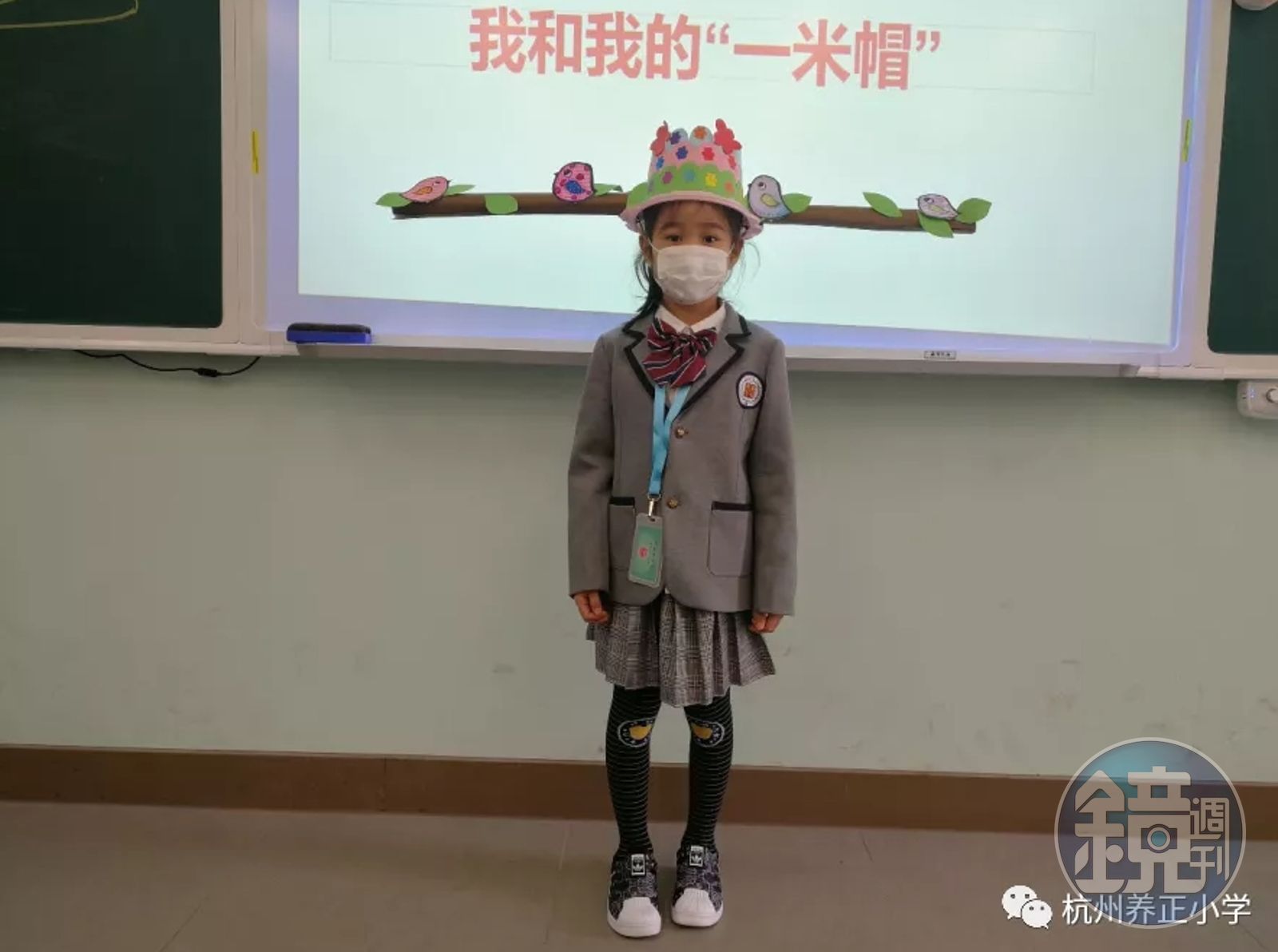 中國杭州養正小學要求學生戴著自製的「一米帽」上課。(翻攝自杭州養正小學官網)發布時間:2020.04.29 16:36 臺北時間