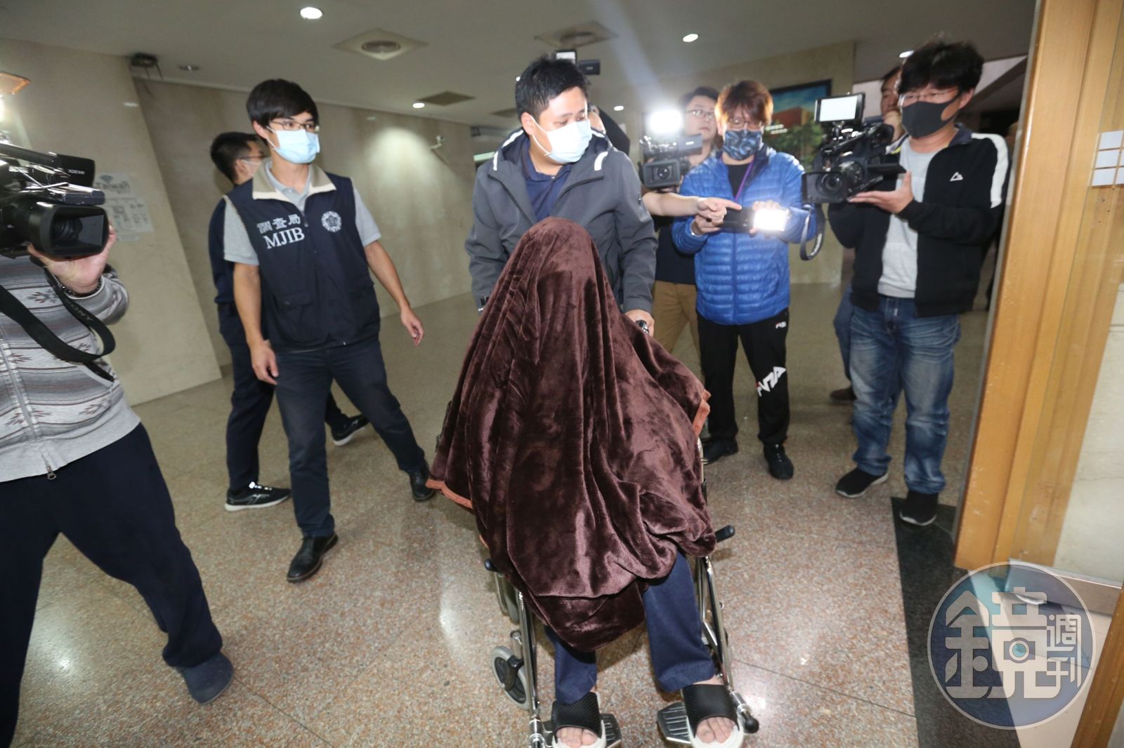 本名黃照岡的黃琪在今天凌晨12點多,被調查局移送到北檢時,他又一副病態要求坐上輪椅,並用衣物把頭整個蓋住,對案情並未表示意見。
