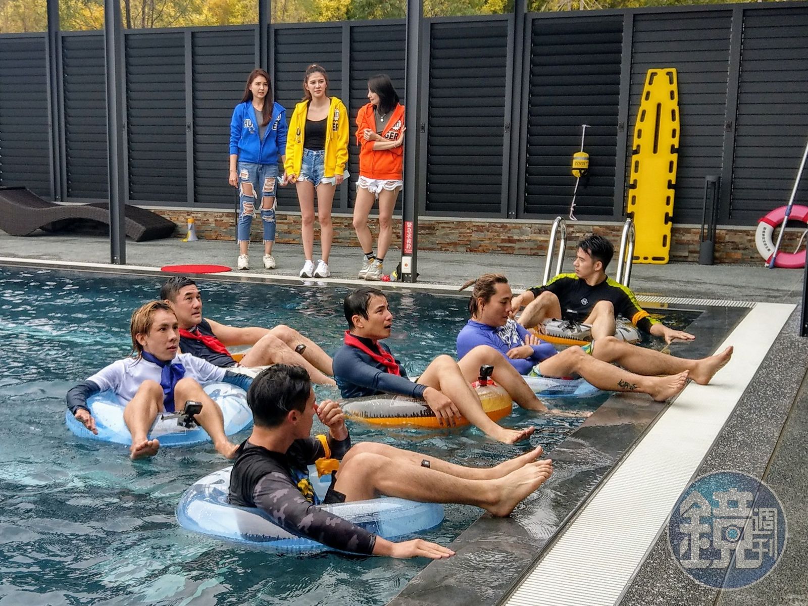 男藝人越玩越起勁,許孟哲甚至玩上癮大喊加碼:「玩到都不冷了,我們再多玩幾把!」遊戲明明是要搶奪指定物品,一群大男人則是使起心機,互拉對方的游泳圈,阻礙彼此前進,孫協志甚至一隻手抓王仁甫的腳,一隻手扣住許孟哲的手,鬥心機的畫面讓不用下水的韋汝、 阿喜、吳采臻等邊笑邊喊「好幼稚」。