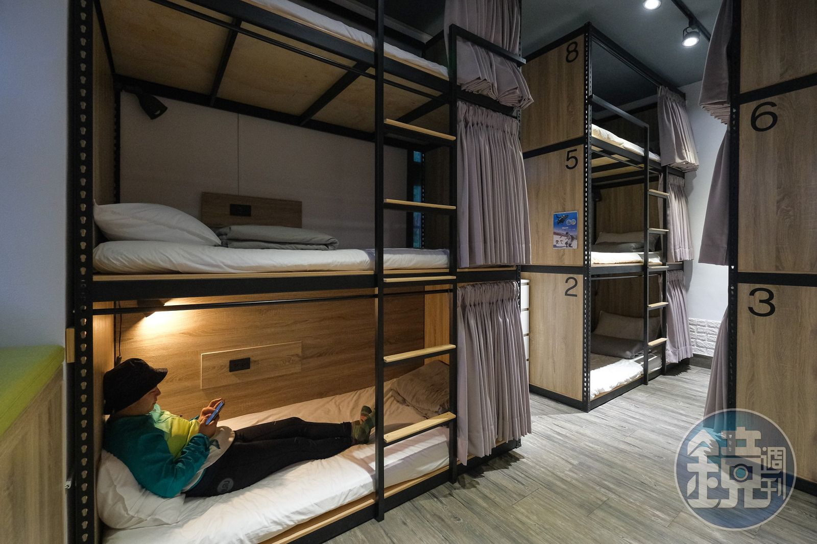 雖然是主打戶外活動的店家,曾瞾軒也結合過往赴紐澳的旅宿經驗,打造出最多可睡20人的青年旅店空間。分為雙人床房型與床位式住宿,以棧板當做床板,簡單的雙人房具有設計感,這兒的床位是加大單人床,躺下去空間寬敞,舒適度也同樣兼具,想要來龍洞感受不同山海氣息的旅客,在地住上一晚,也能感受完全不同的漁村氣息。